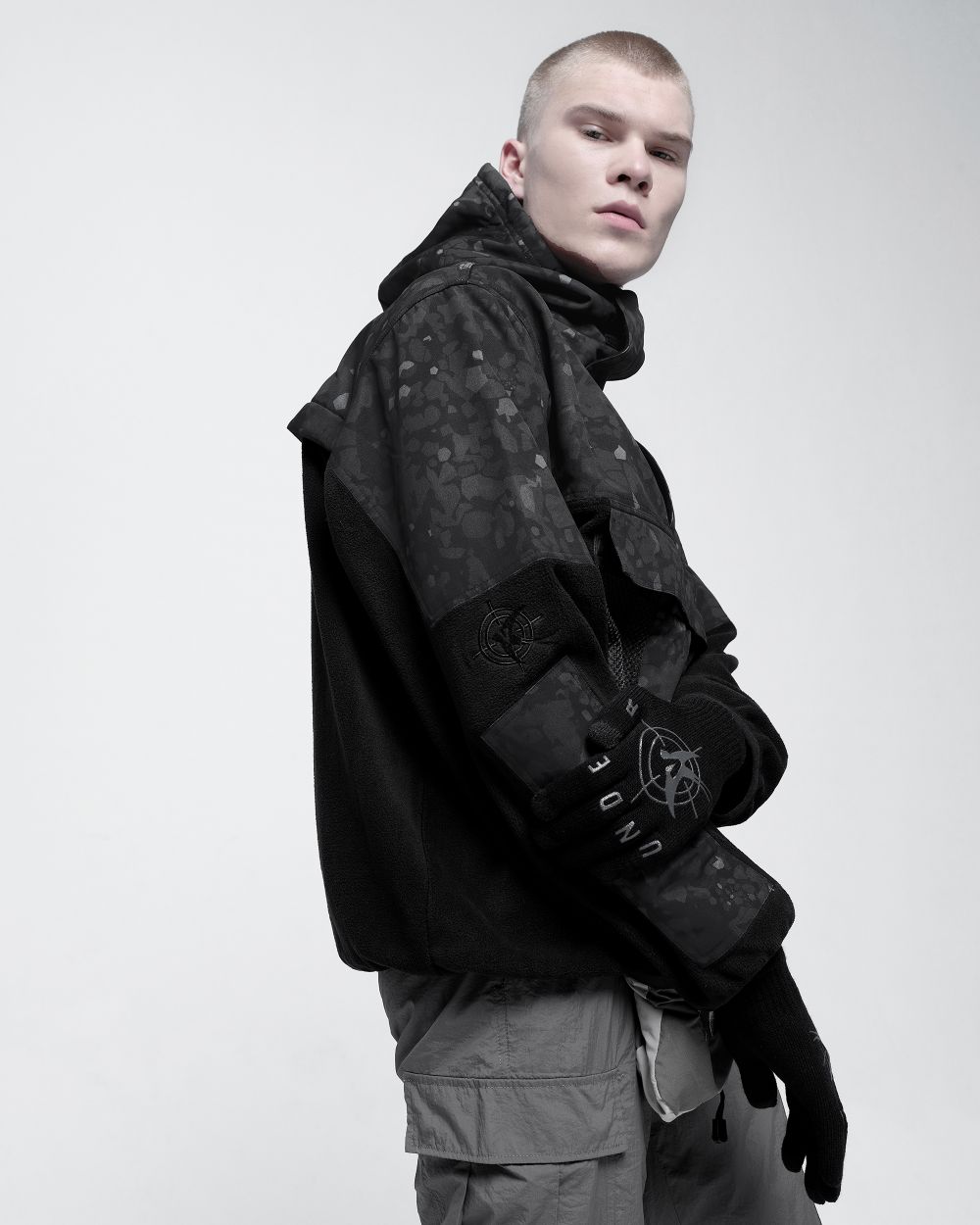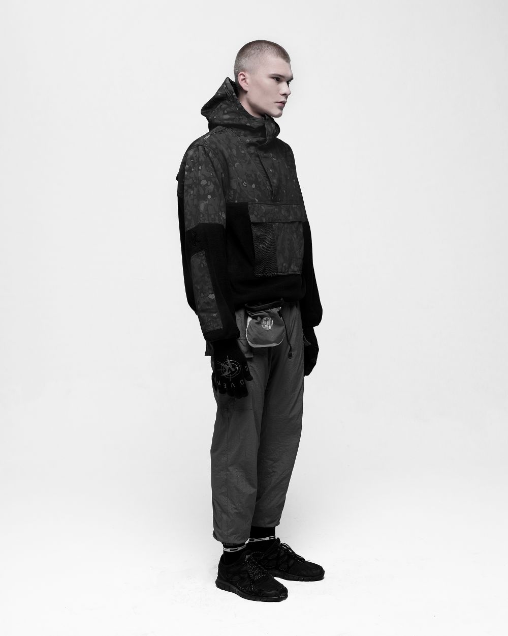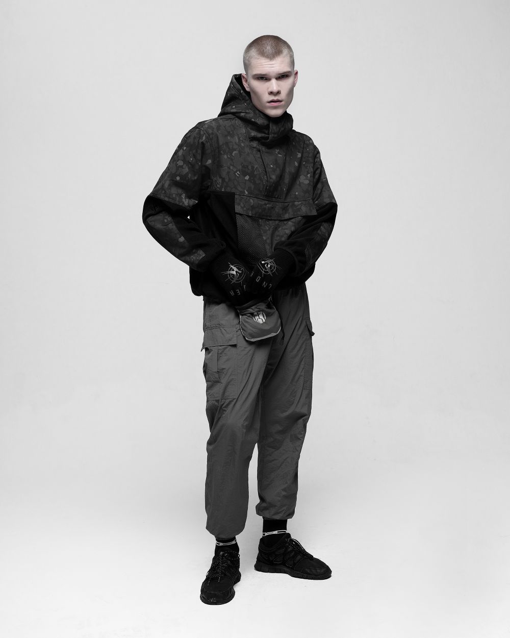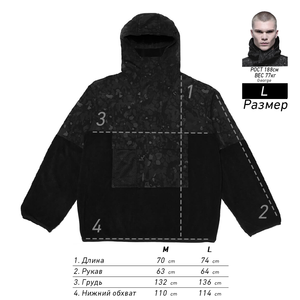 The CRISIS anorak is made in the style of the Undercover Pacific Northwest and combines all its features. Soft fleece fabric protects from light wind and keeps warm even when wet, and in combination with high-tech polyester with a print creates a unique style. A Velcro pocket is used for storing things, side pockets warm your hands. An additional mini mesh pocket is also installed. A storm shield with a zipper and Velcro helps protect against the weather. Hood with a lock on the back side. Embroidery with CS logo on the right sleeve. Cuffs and hem with elastic band.