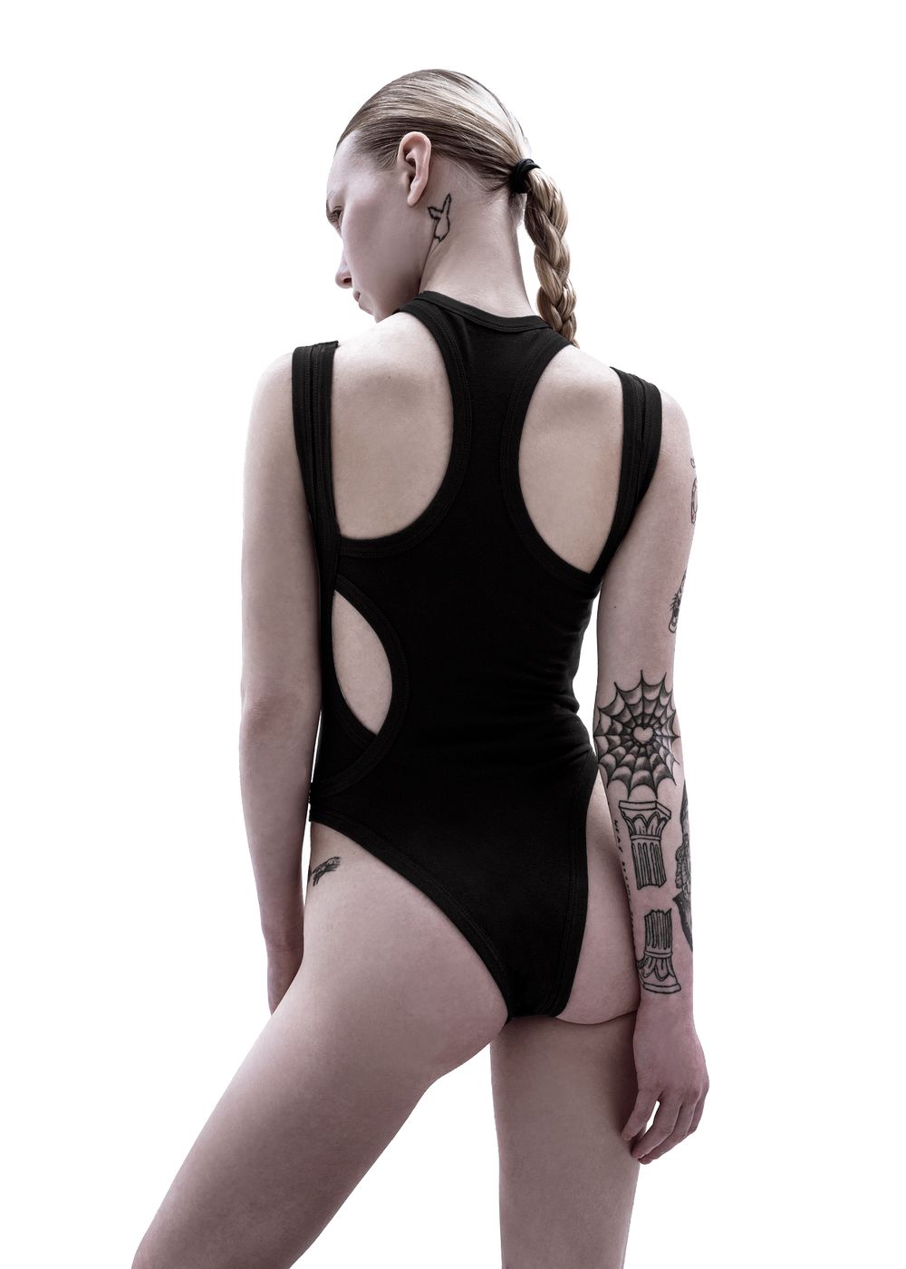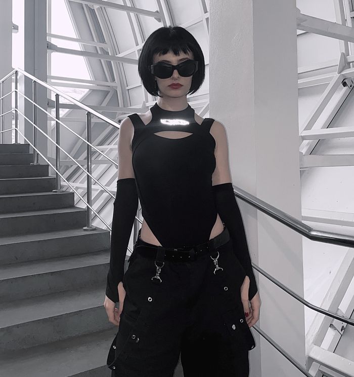 Difficult unusual cut will definitely make any look more interesting. High cutouts at the hips will sculpt your body. It has a hook closure at the bottom that can regulate length.