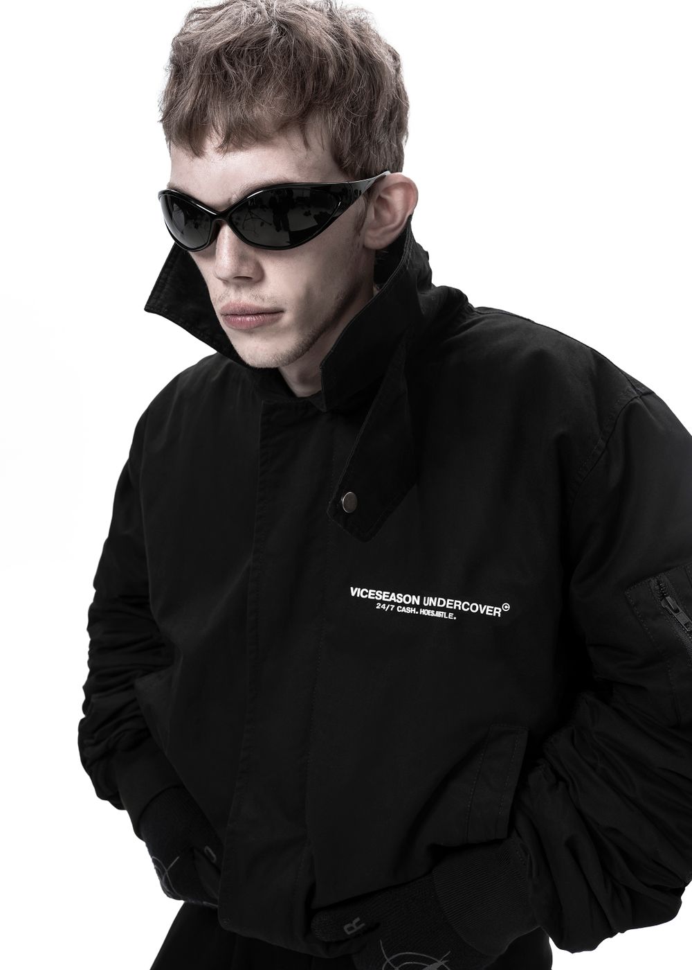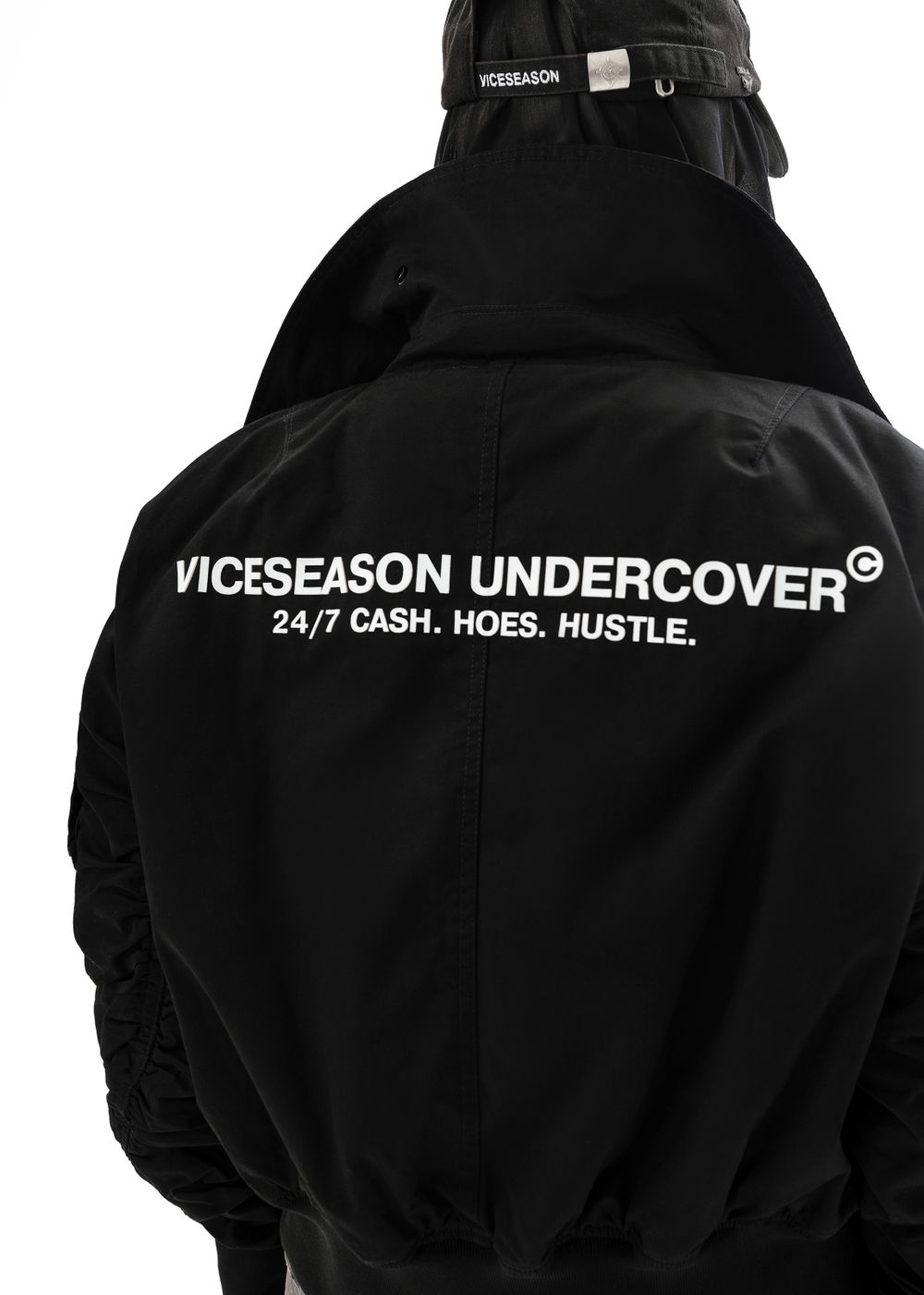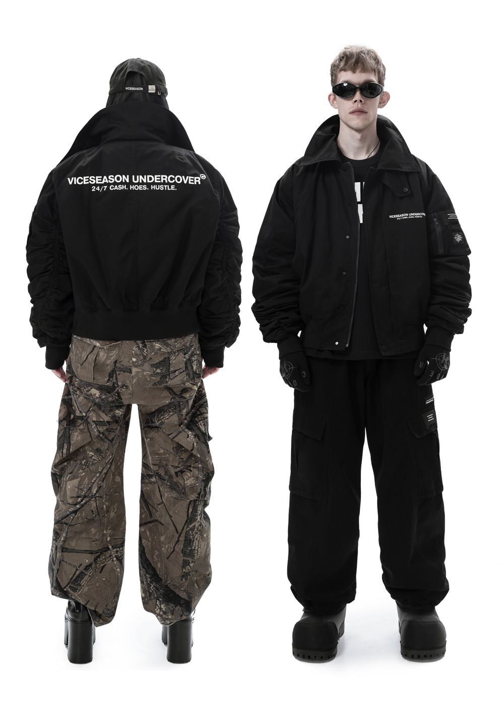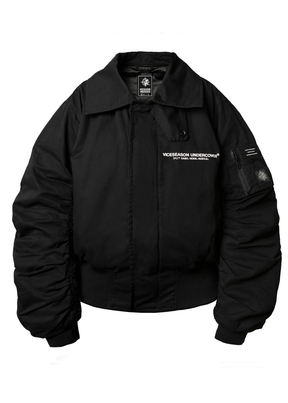 Durable YKK zippers and metal buttons. Raised silicone prints “24/7 CASH HOES HUSTLE” — a direct statement for those who live life to the fullest and aren’t afraid to show their attitude. Sleeve patches complement the overall style of the bomber.