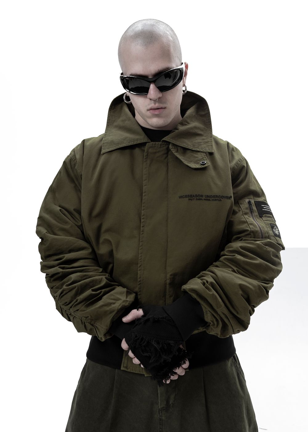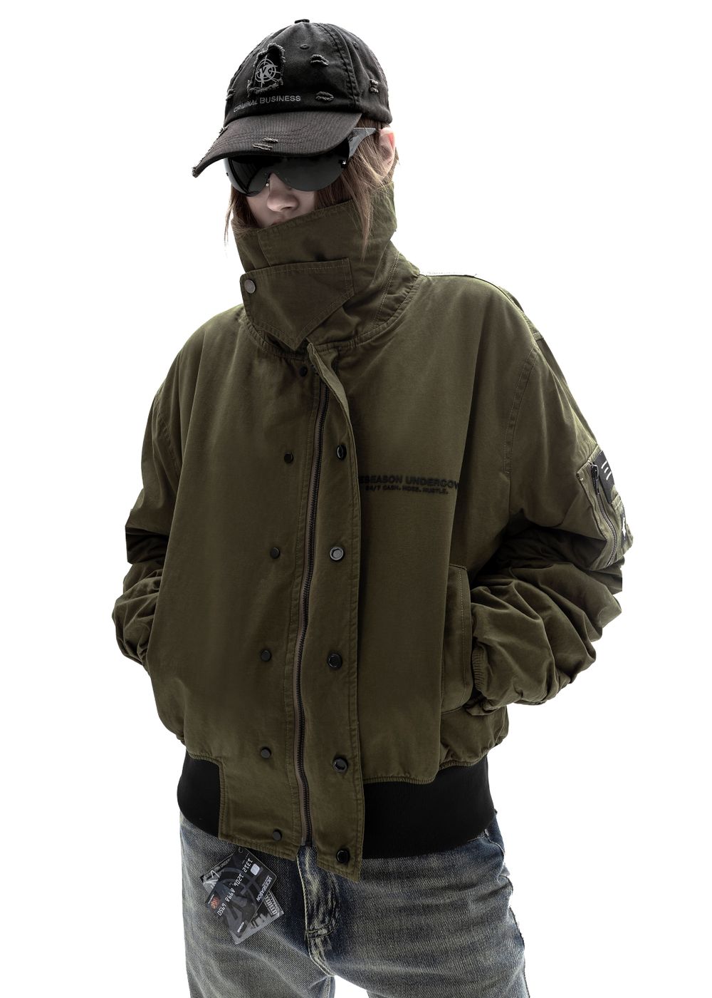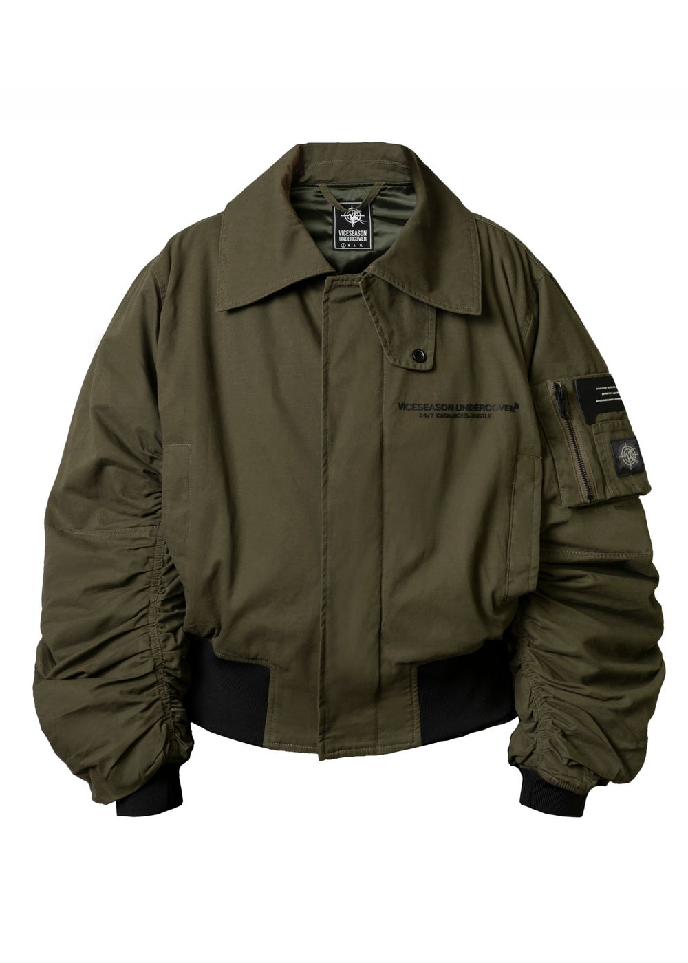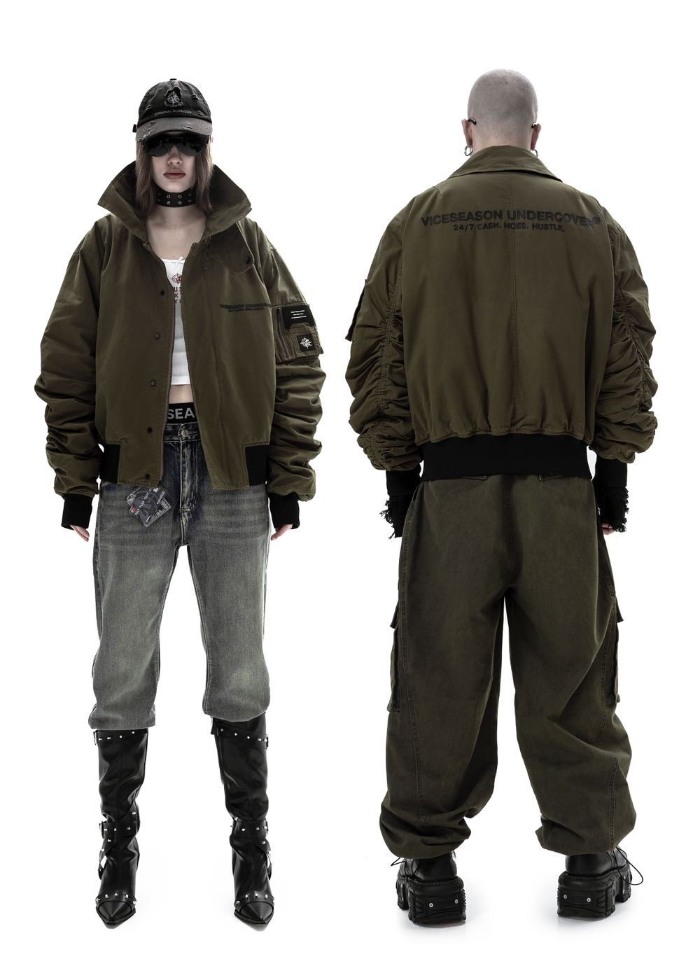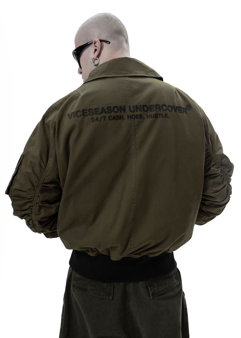 Durable YKK zippers and metal buttons. Raised silicone prints “24/7 CASH HOES HUSTLE” — a direct statement for those who live life to the fullest and aren’t afraid to show their attitude. Sleeve patches complement the overall style of the bomber.
