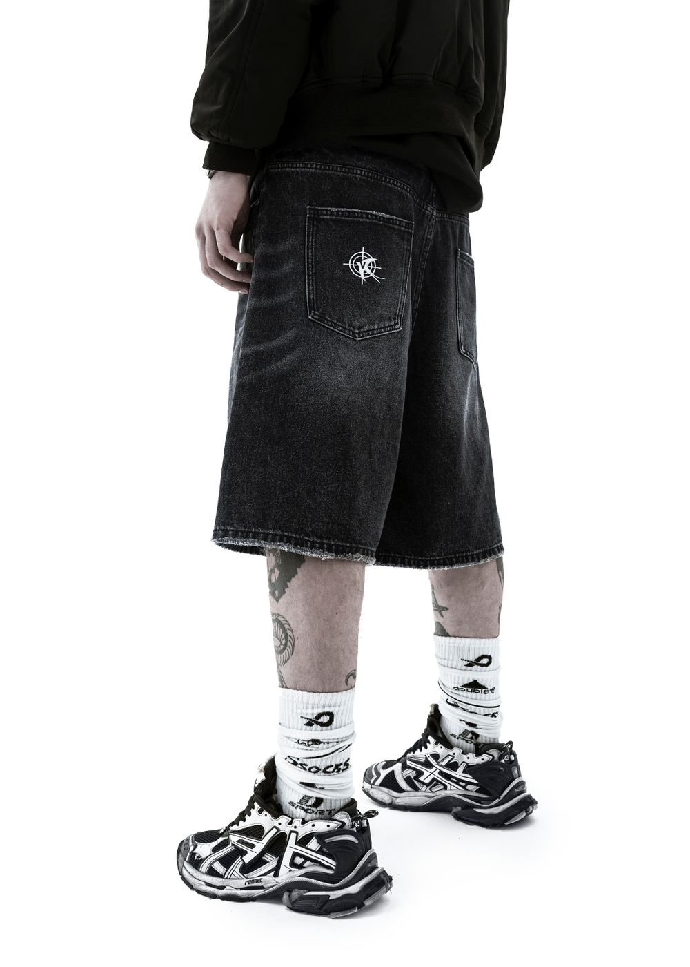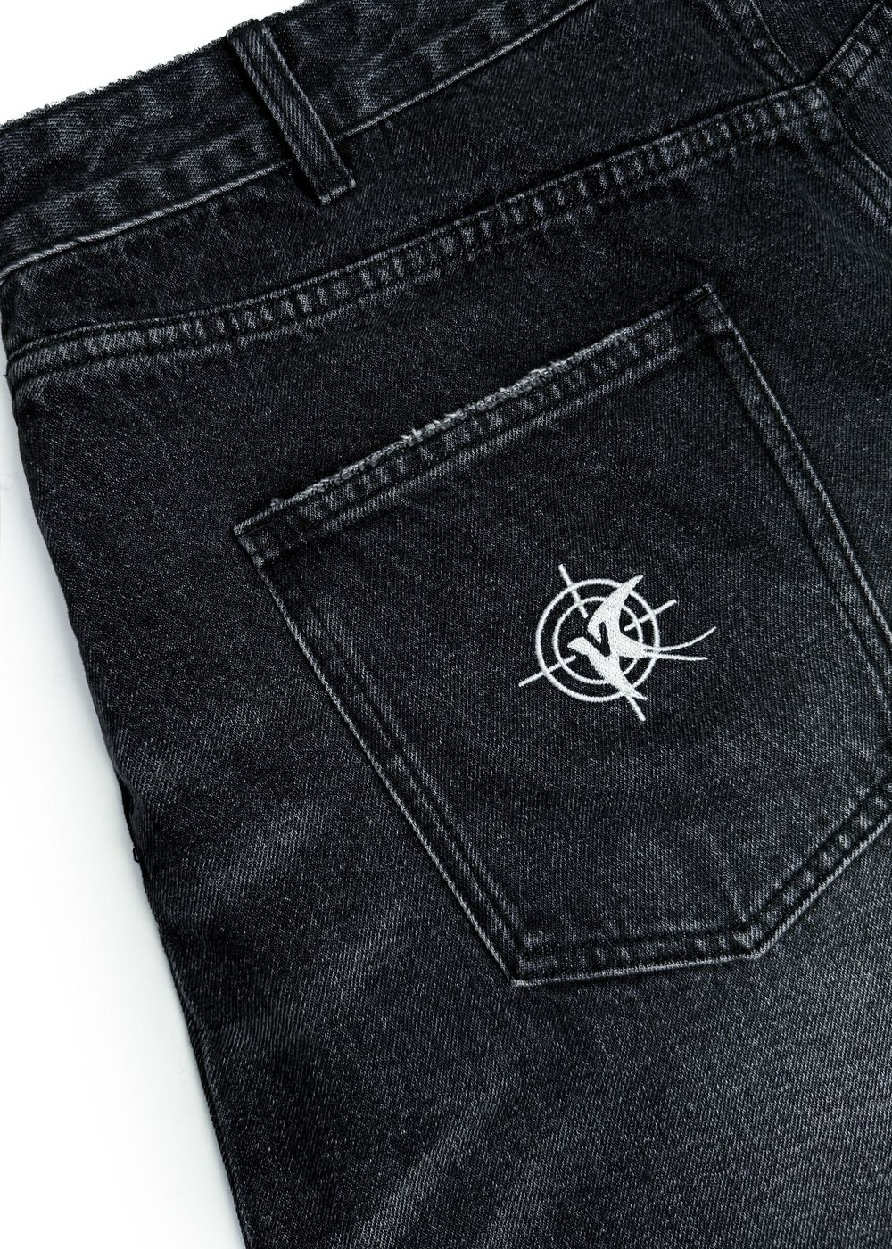 Края изделия и карманов обработаны вручную и имеют легкую бахрому с винтажным эффектом. Вышивка лого на левом заднем кармане. В пояс вшит брендированный жакрон Viceseason из эко-кожи. Двойная шлевка на передней части пояса с металическим дизайном для крепления брелков, карабинов и прочих аксессуаров.
