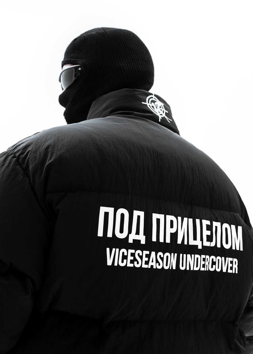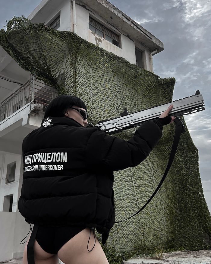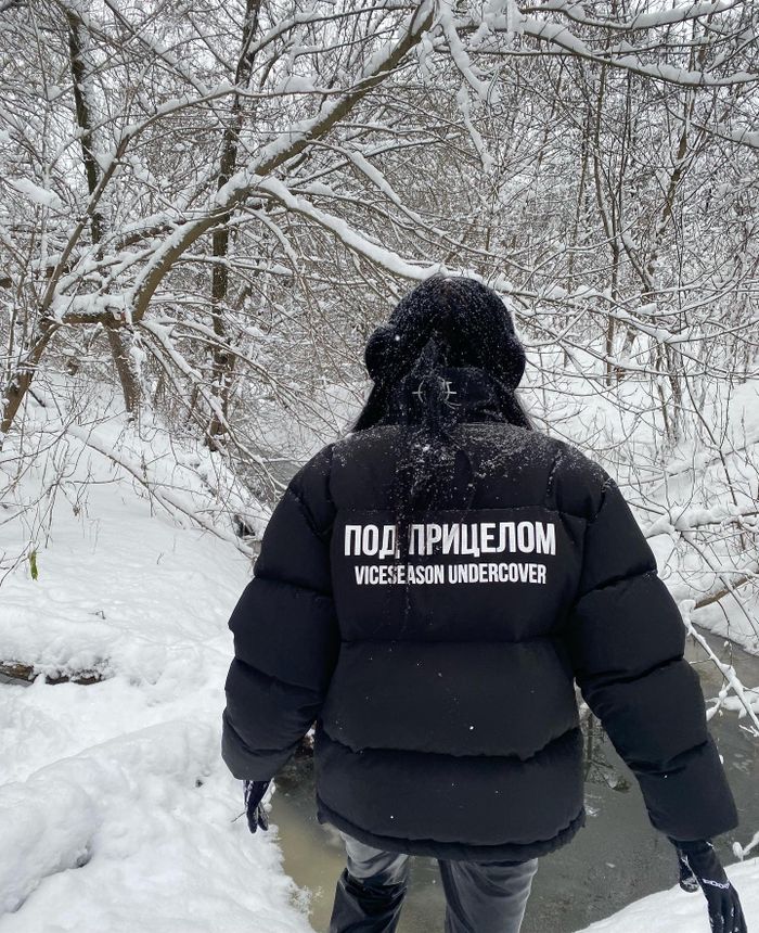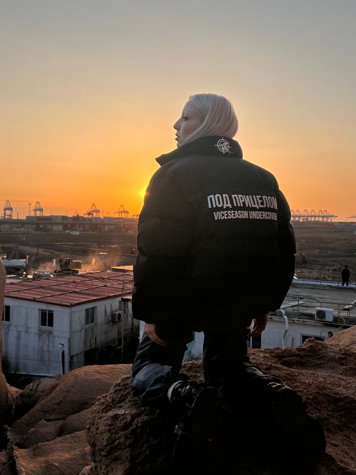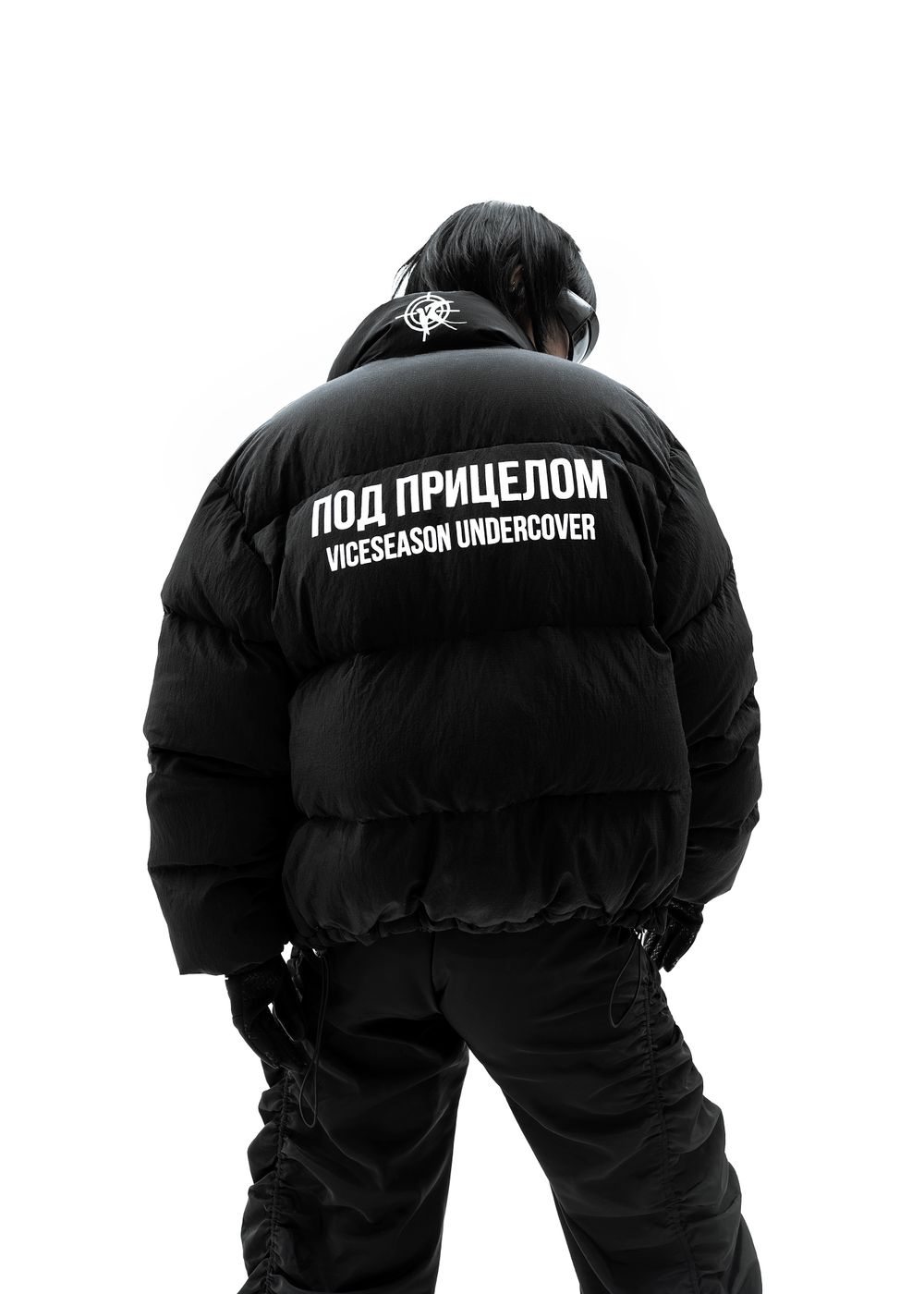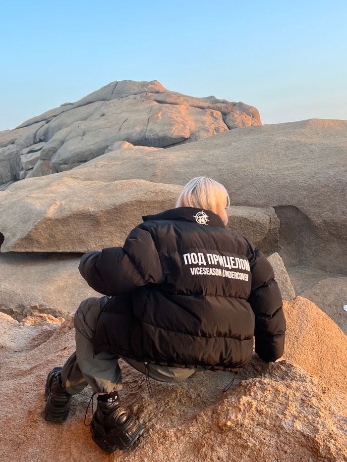 Silkscreen print on chest, collar and back. "Under the gun" - the print on the back, carries the idea that each of us is currently under the control of the regime, but we are not going to succumb to it.