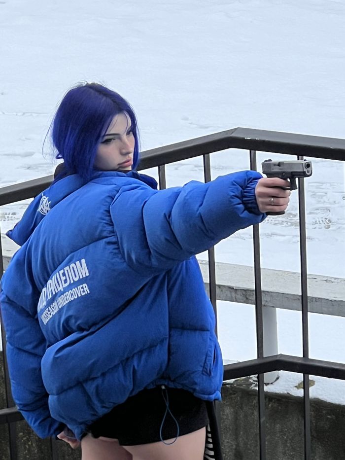 Silkscreen print on chest, collar and back. "Under the gun" - the print on the back, carries the idea that each of us is currently under the control of the regime, but we are not going to succumb to it.