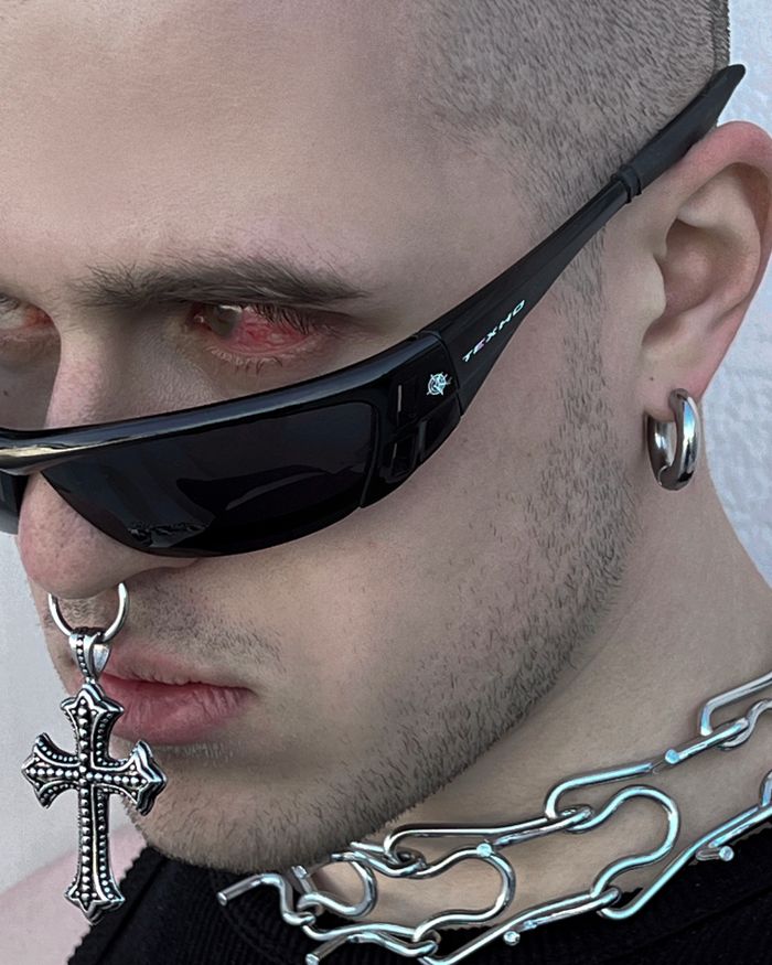 The prints on the handles «techno» and «electro» were inspired by electronic music. The glasses are made for raves to make you the most stylish there.
