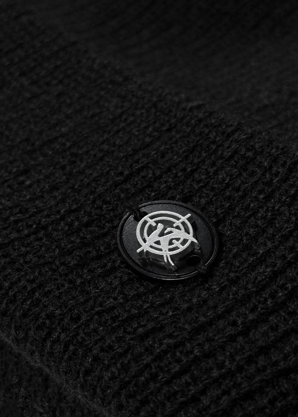Dense premium acrylic knit. It went through several dyeing stages to achieve a deep matte black tone that looks refined and expensive. Warm, soft, shape-holding, non-itchy and resistant to stretching.