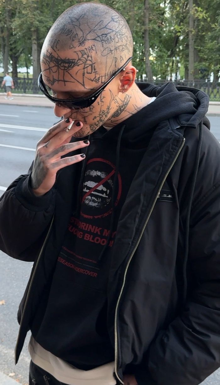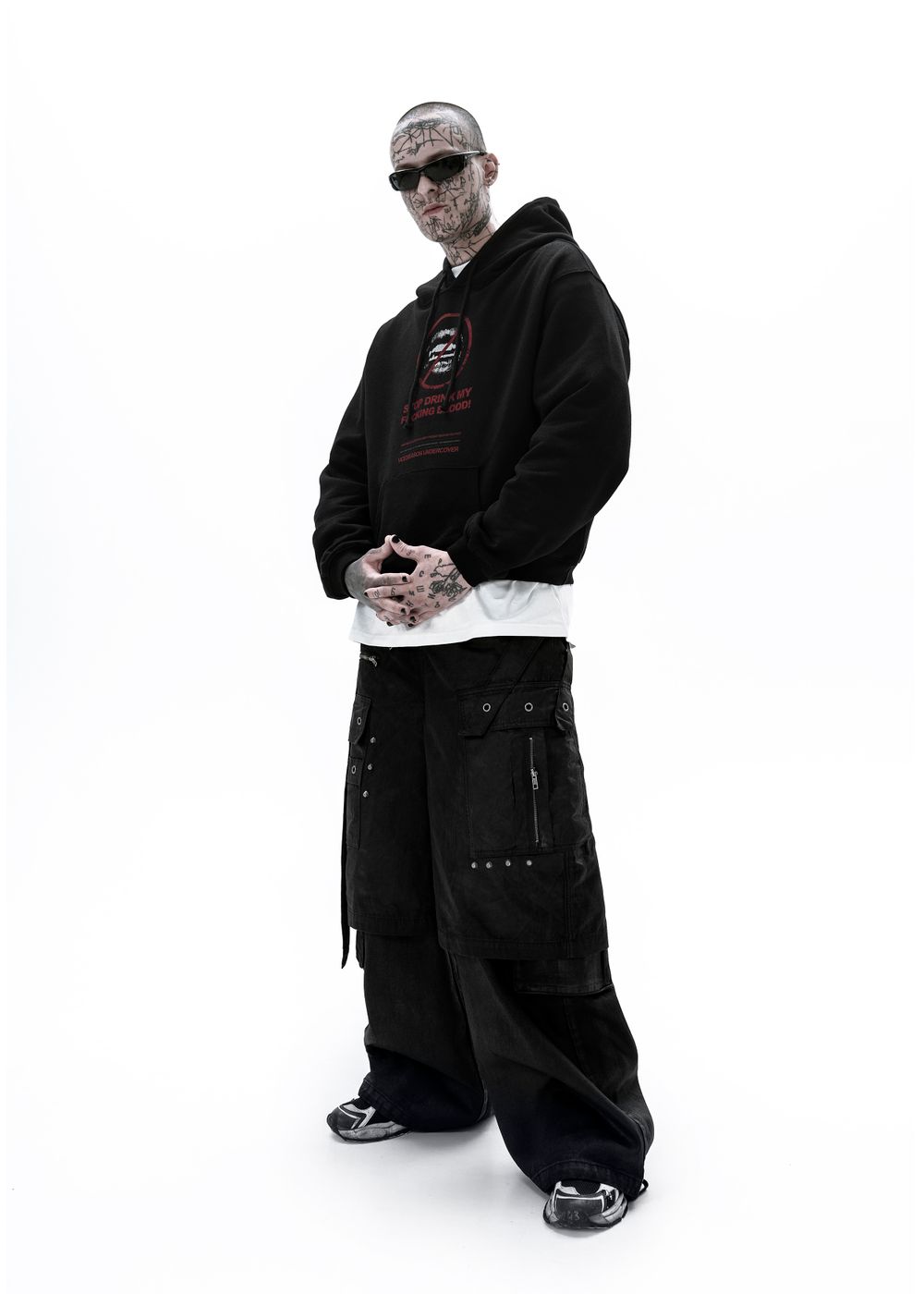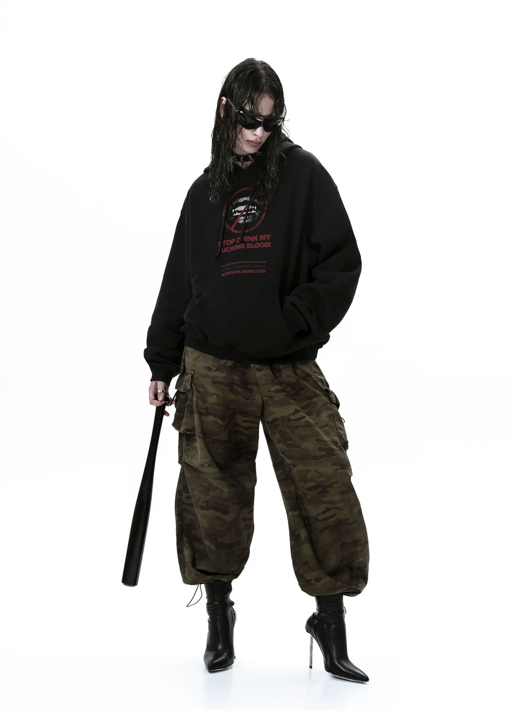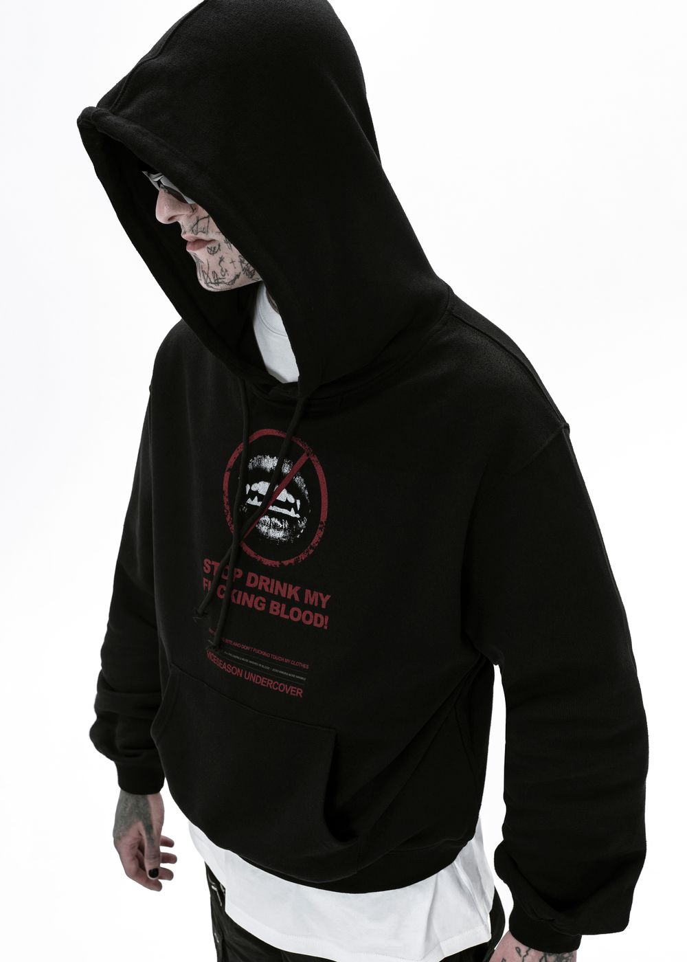 Oversized fit. Voluminous sleeves, dropped shoulder. Large hood. Front kangaroo pocket.