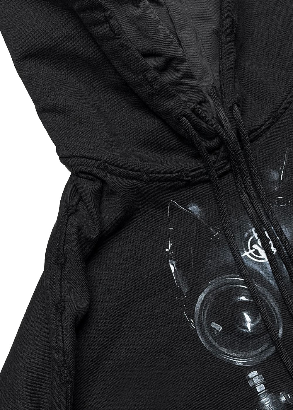 The key feature is the double hood with two pairs of drawstrings, designed to create a feeling of total isolation. The print is applied using durable digital printing.