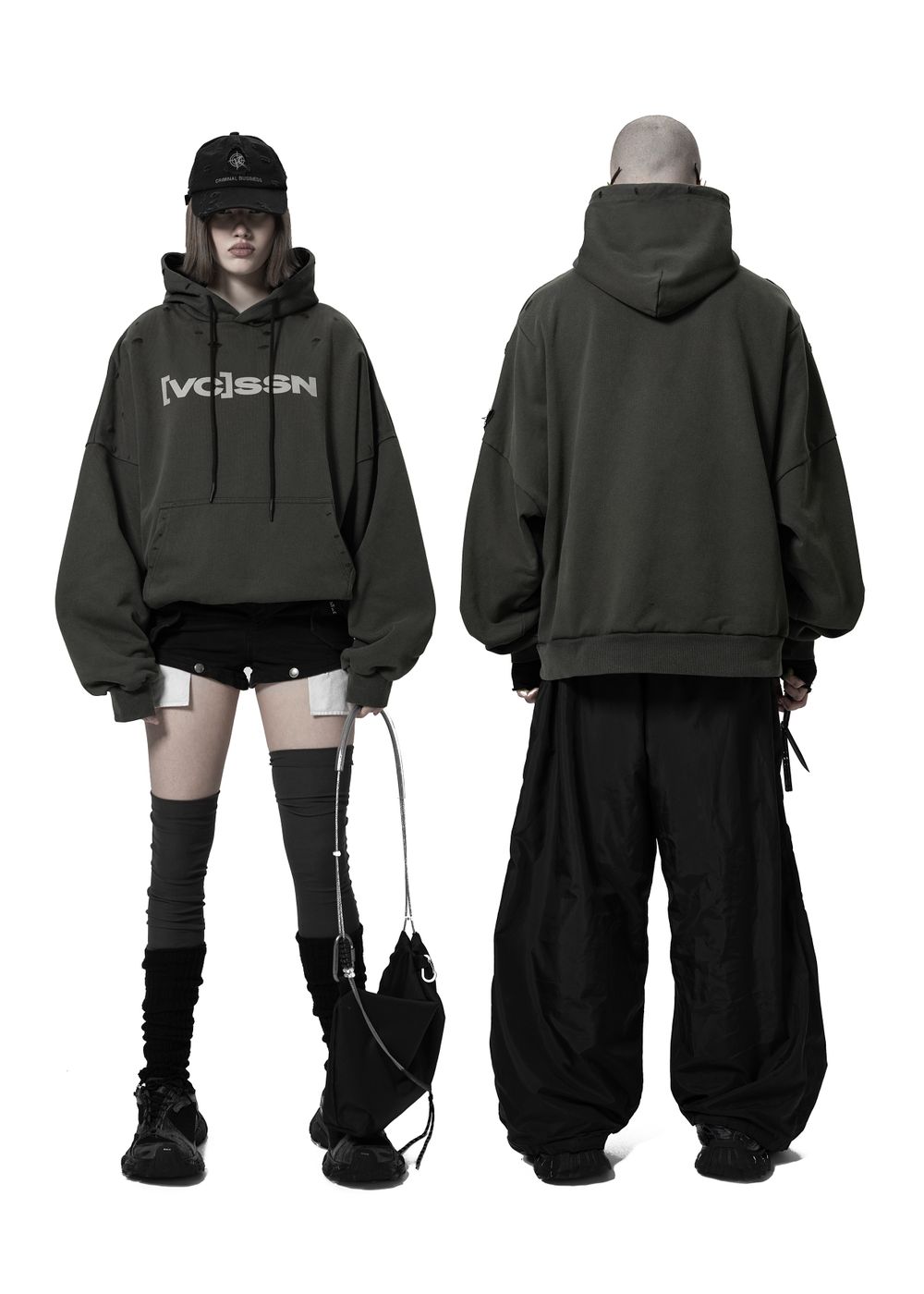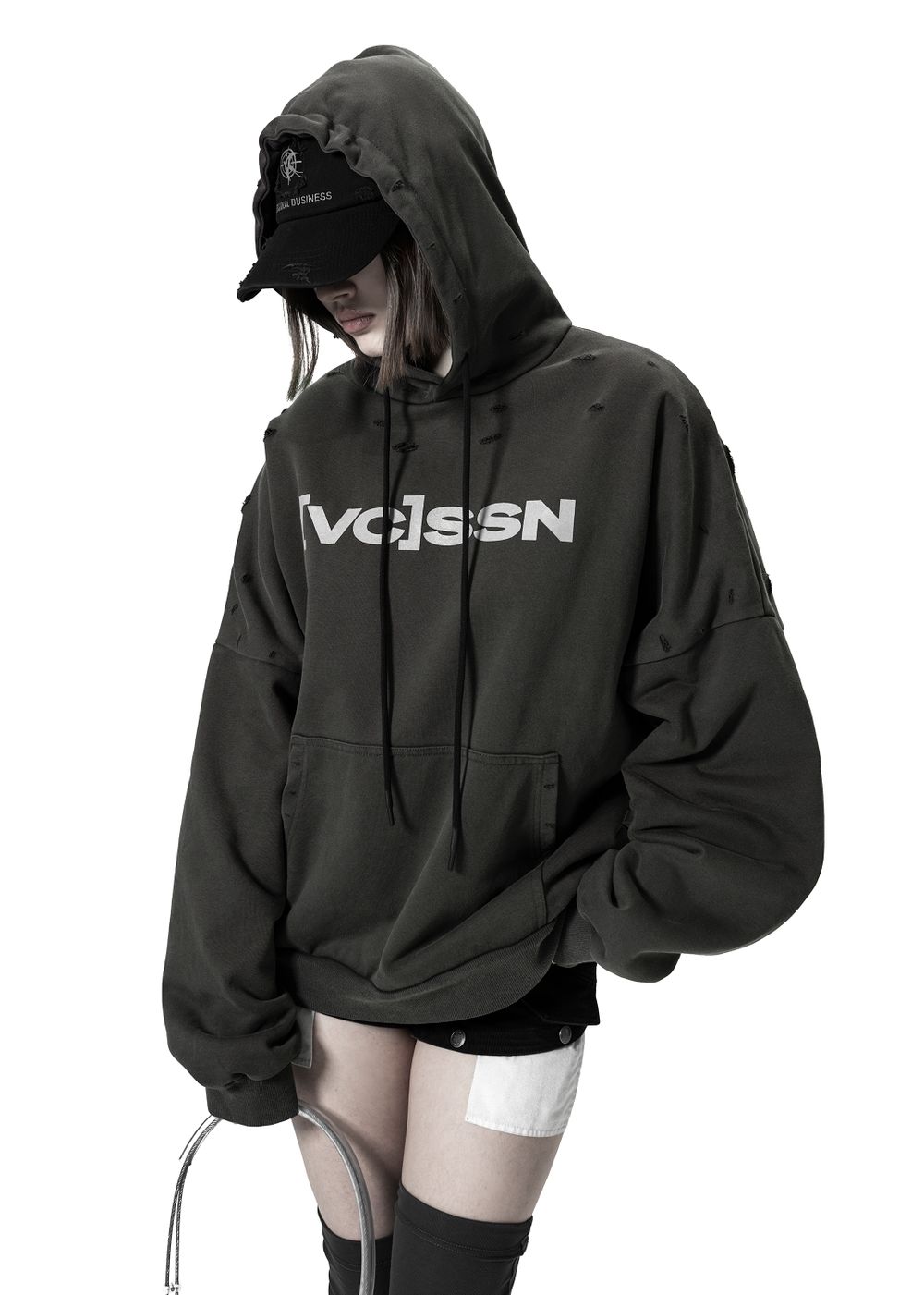 Ultra-voluminous heavy oversized silhouette with a massive hood and dropped shoulders. Hoodie weight — approximately 2 kg.