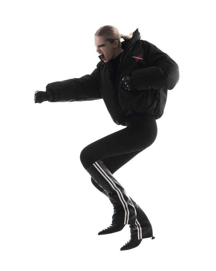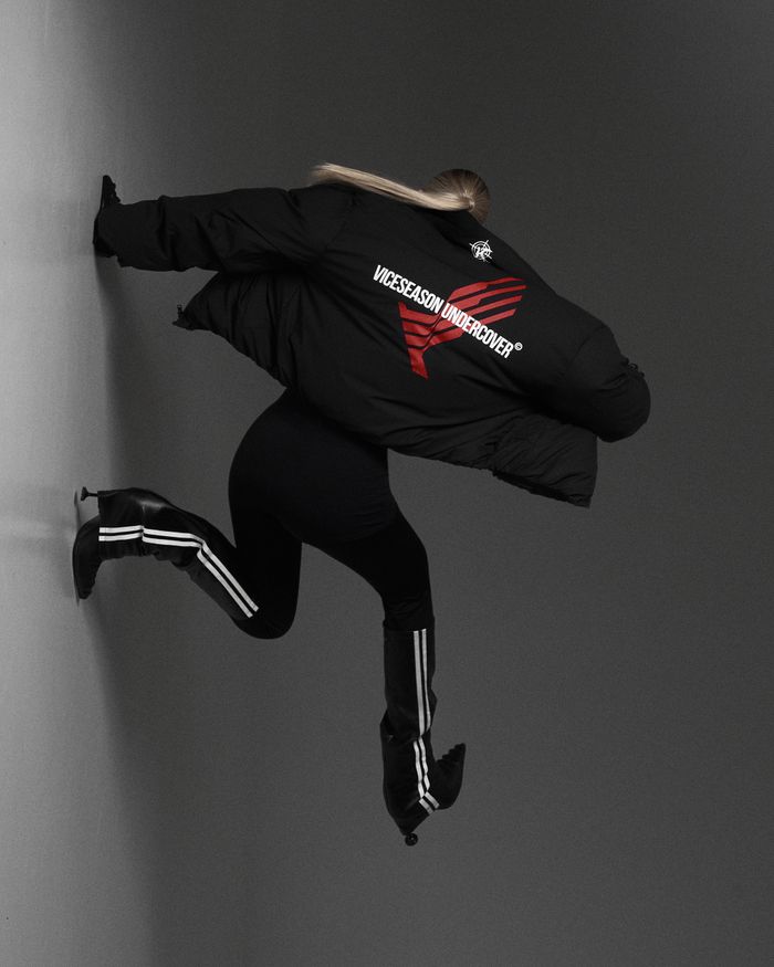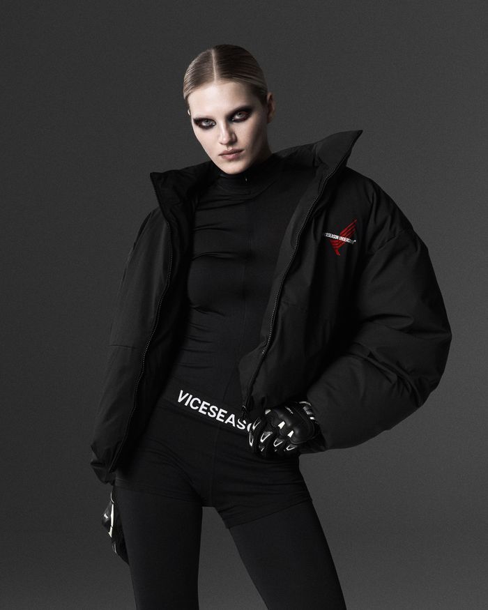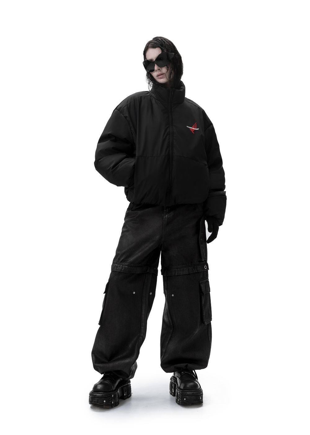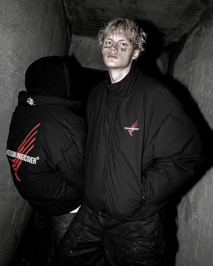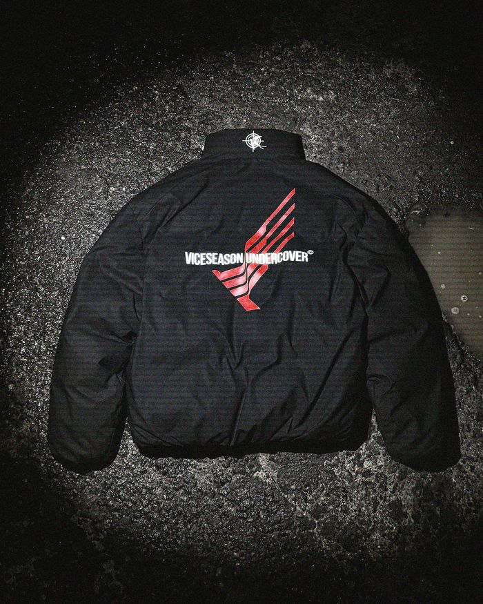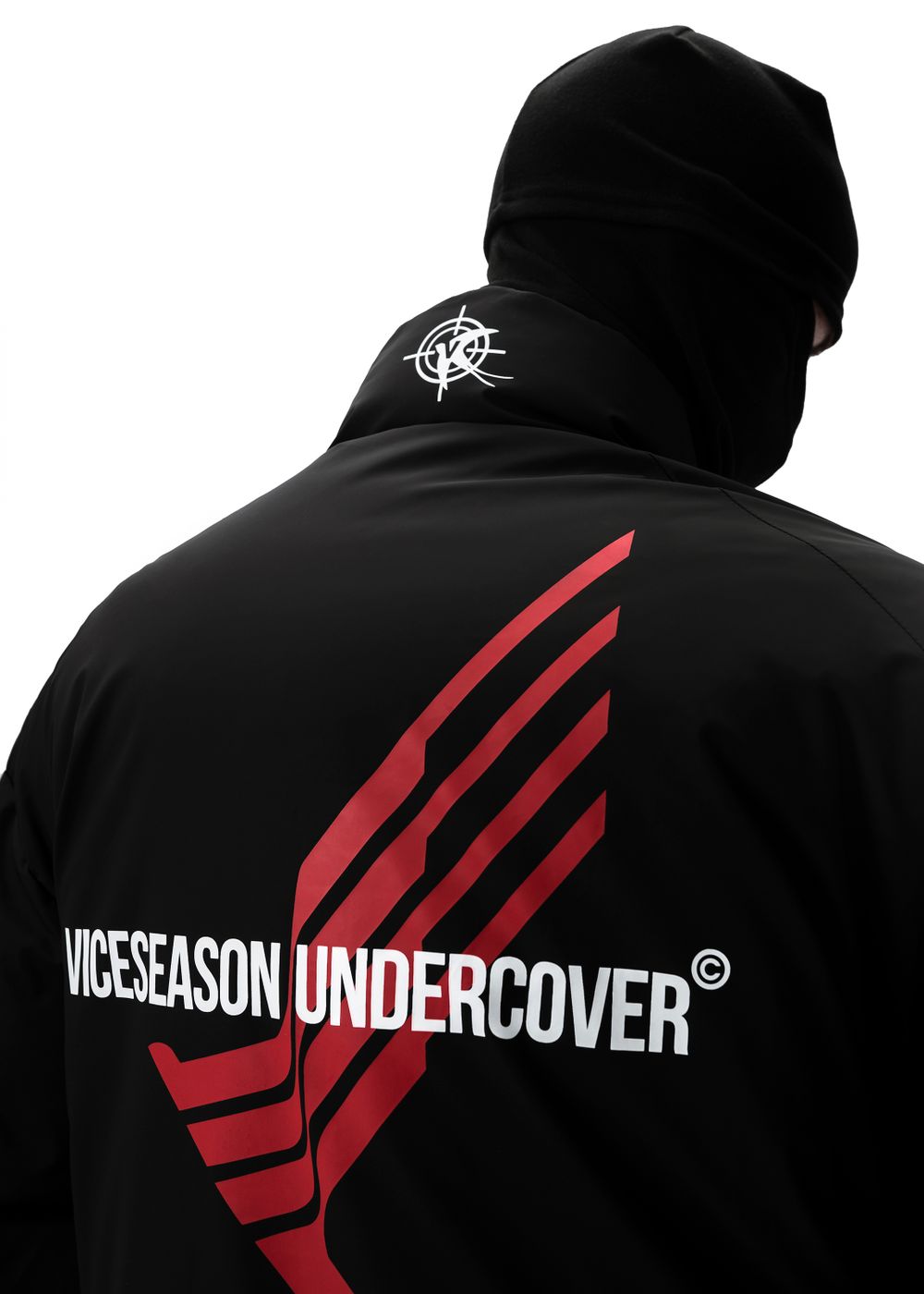 Durable YKK hardware. The jacket features a bright inner pocket and a hanger loop. 2 side zip pockets with a fleece lining for warmth. Branding print with a bright red element on the left chest, a similar large print on the back, and a logo print on the high stand-up collar. Hidden elastic cuffs around the hem and sleeves protect against wind. All sizes have an oversized fit; we recommend choosing your regular size.