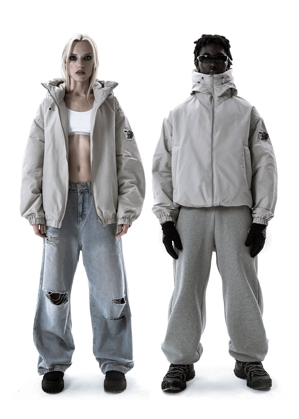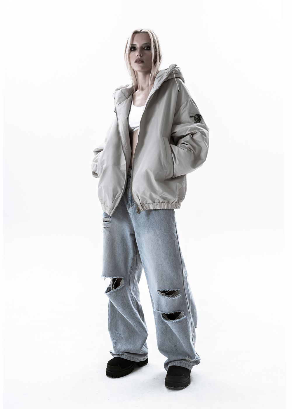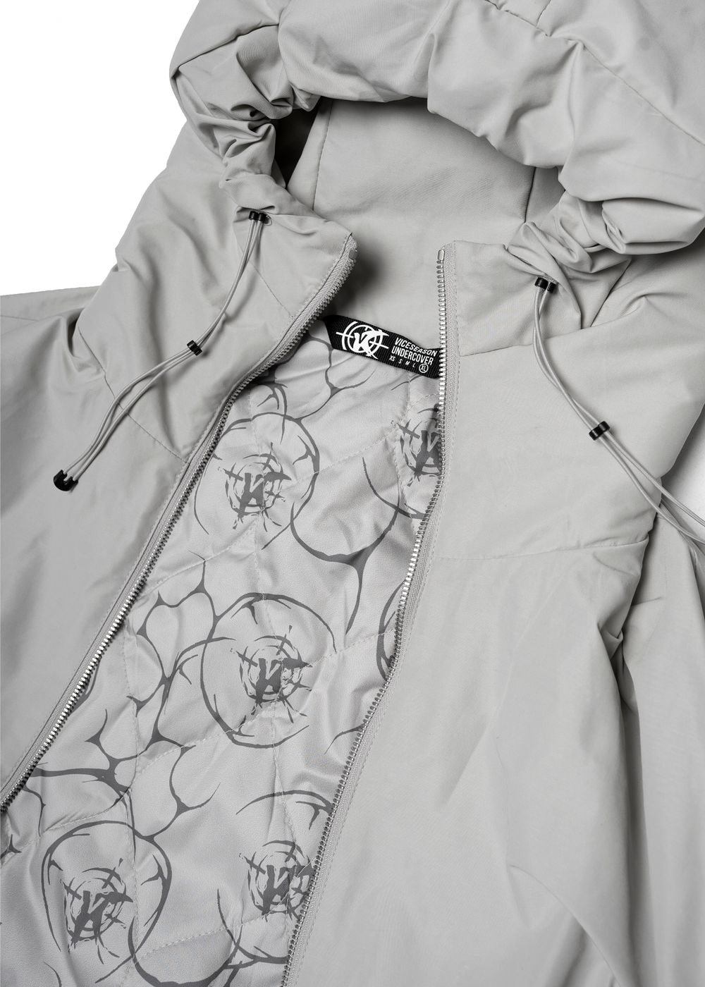 Oversized fit. The jacket is light, does not give a feeling of heaviness, but due to the thin down layer inside it perfectly keeps warmth in windy weather. The deep hood with a high collar, adjustable with elastic bands. 2 zipped side pockets with soft fleece inside. Inside pocket with zipper. All sizes are oversized, so we recommend to take your size.