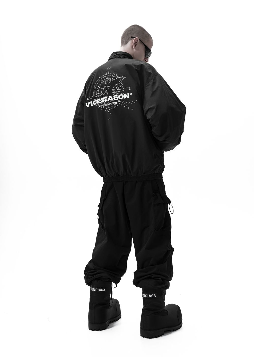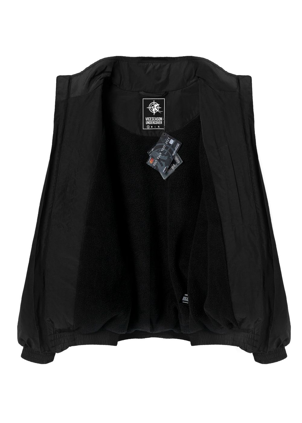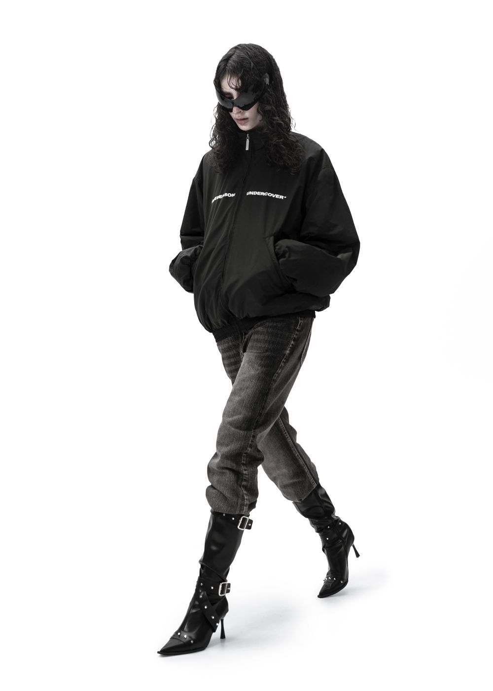 Voluminous oversized cut with dropped shoulders. The jacket can be reversed and worn on both sides. High stand-up collar. Convenient side external zip pockets and 2 internal pockets.