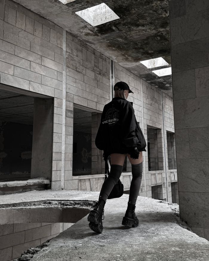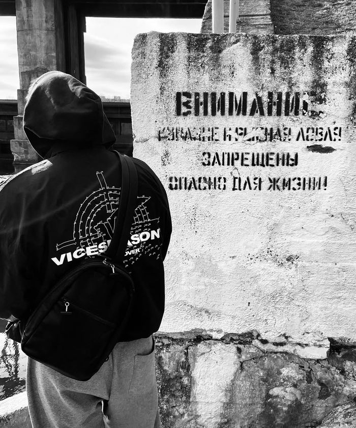 The nostalgic black-and-white print on the back is done in a primitive style and represents the classic childhood connect-the-dots game. Combining art, nostalgia, and personal memories, the image shows a logo that is half-completed, with numbered dots waiting to be connected. Part of the “Techno Club” line. It comes with a unique tag in the form of a branded keychain with a plastic bank card and a branded techno floppy disk.