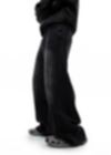 Straight oversized fit. Cracked logo print on the back pocket. Durable YKK zipper, branded iron button with engraved logo. Branded metal rivets reinforced along pocket seams. Leather jacron in a rich red color on the waistband.