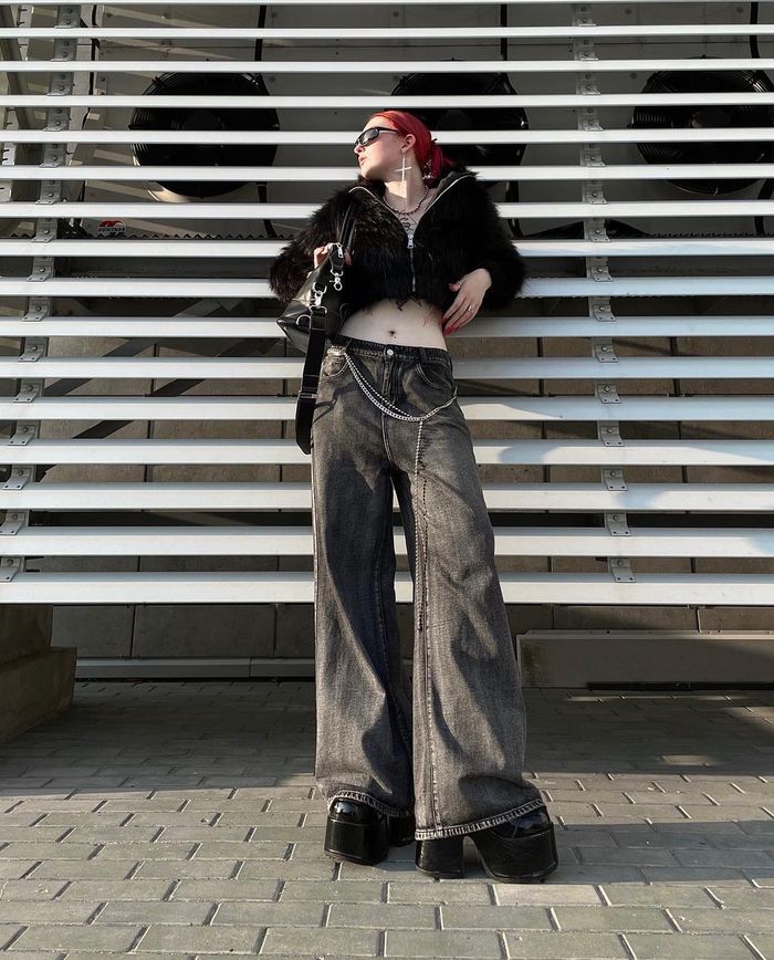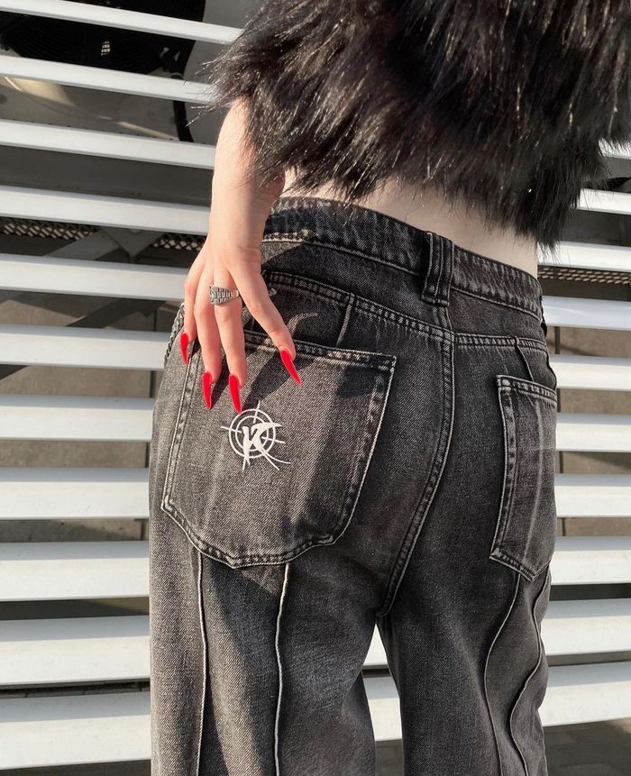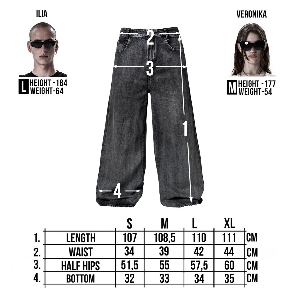 Oversized baggy fit. Low rise, long length. 2 front pockets and 2 back pockets. All sizes are oversized, so we recommend to take your size.