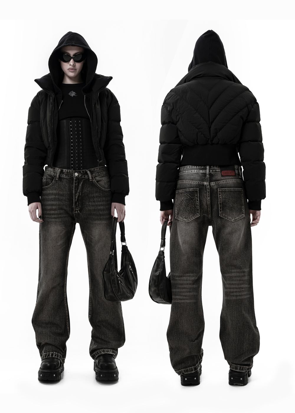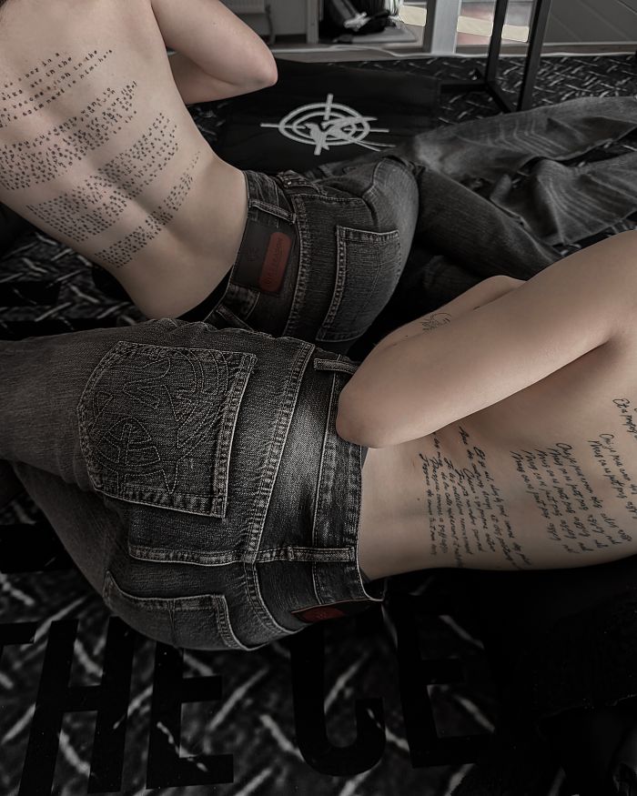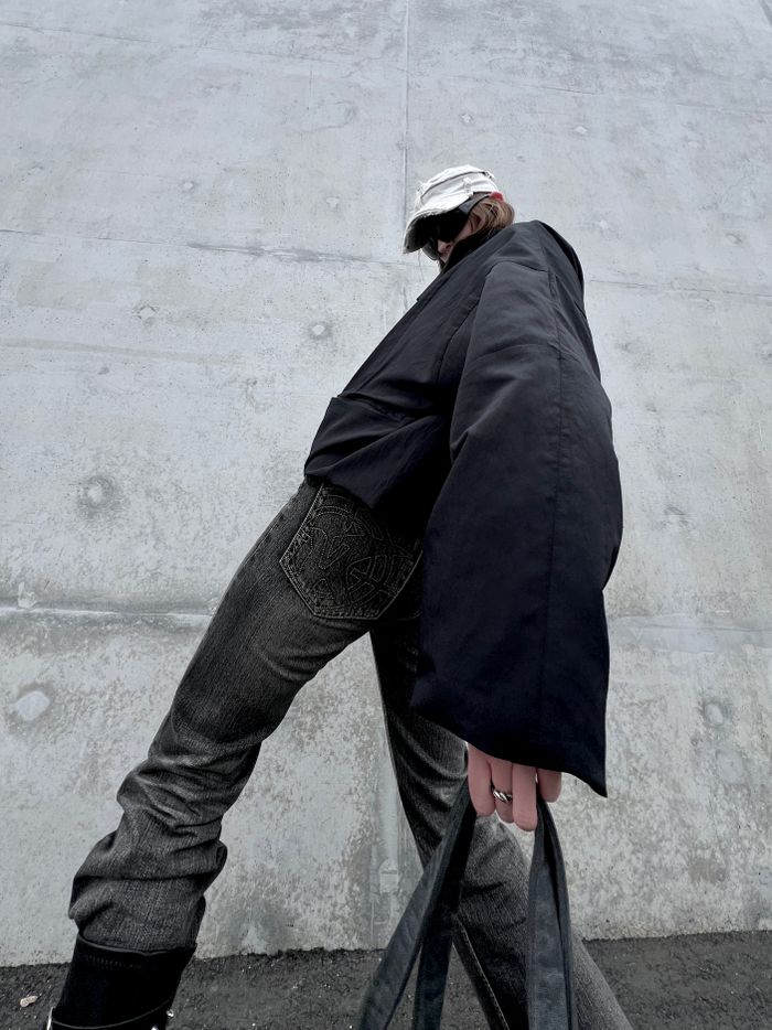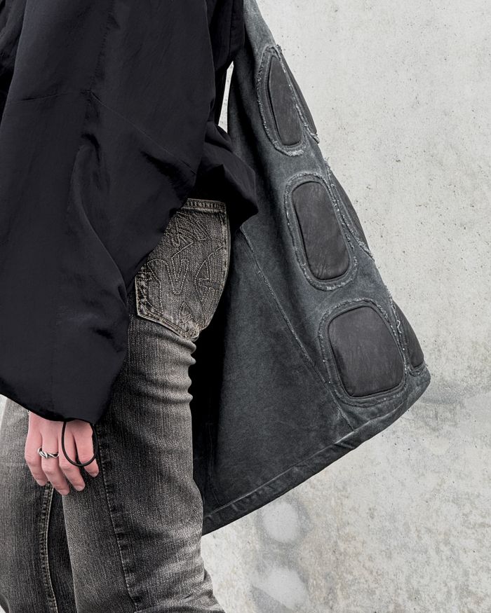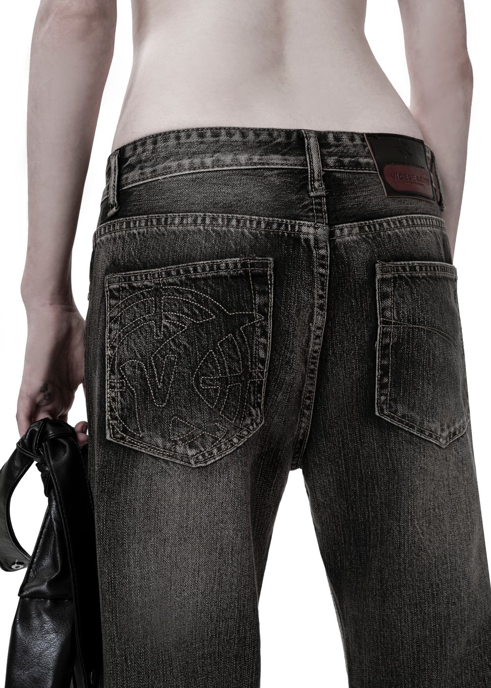 The return of the legendary skinny jeans shapes in our interpretation. "Skins" is a direct reference to the 2010s and the rising "Indy Sleaze Core" trend. Part of the "Techno Club" line, it features a unique brand tag in the form of a bank card and a branded techno floppy disk.