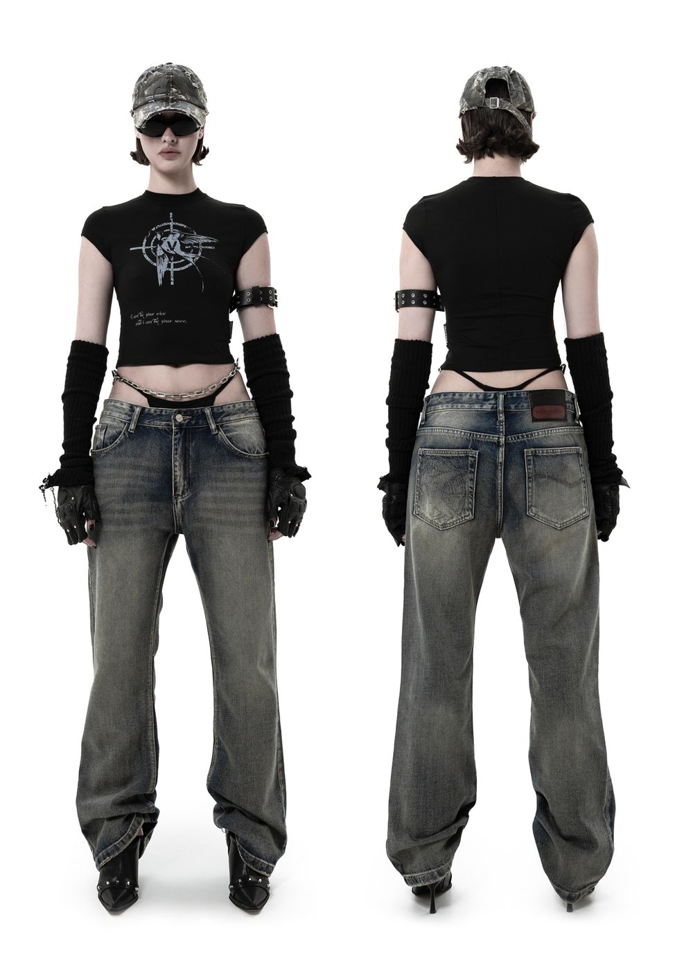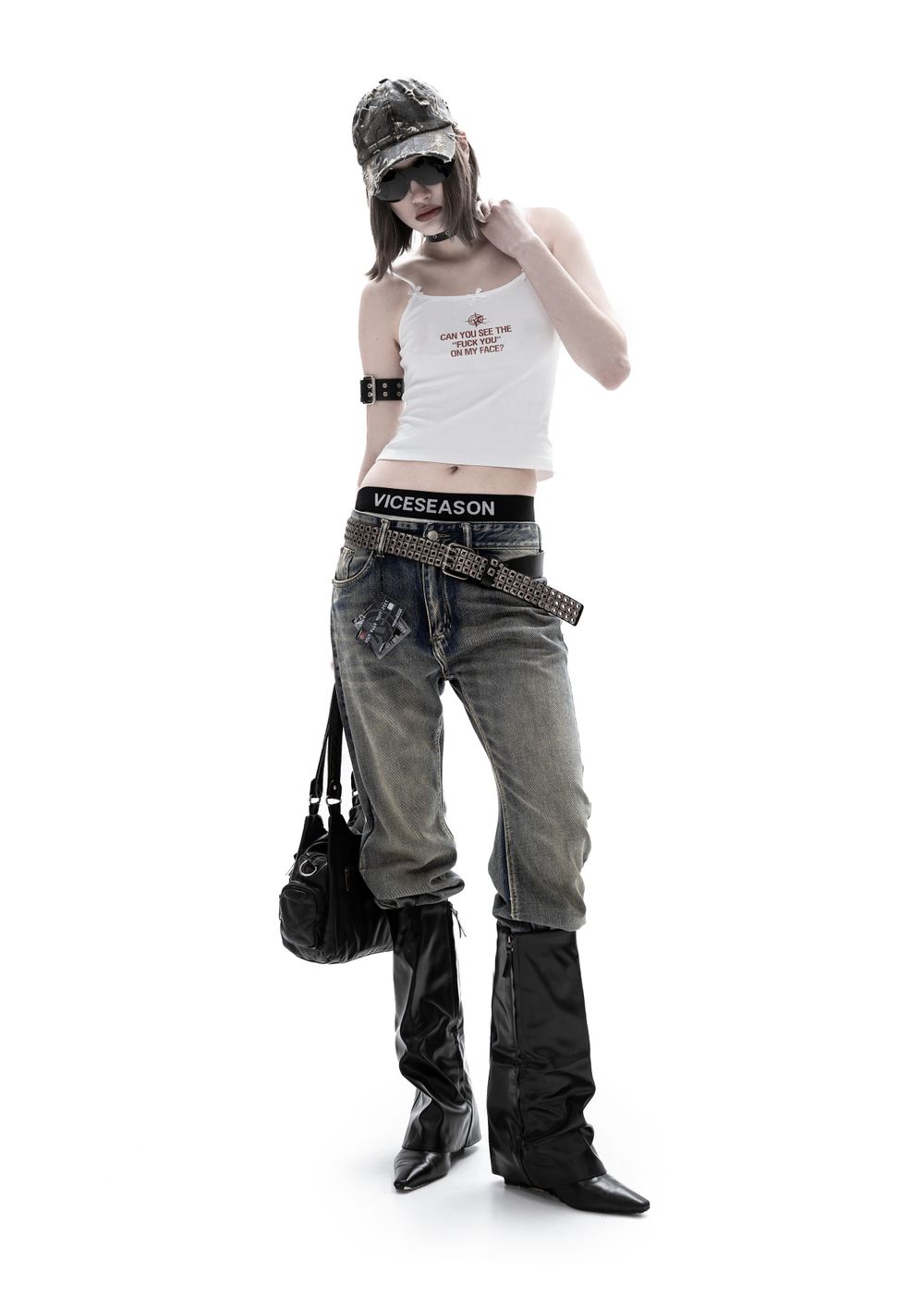 The return of the legendary skinny jeans shapes in our interpretation. "Skins" is a direct reference to the 2010s and the rising "Indy Sleaze Core" trend. Part of the "Techno Club" line, it features a unique brand tag in the form of a bank card and a branded techno floppy disk.
