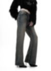 Straight skinny fit. The shape enhances the silhouette and elongates the legs. Thin decorative logo embroidery on the back pocket. Branded iron button with engraved logo. Metal branded rivets built into the seams of the pockets. Leather faded jacron with a burgundy accent on the waistband.