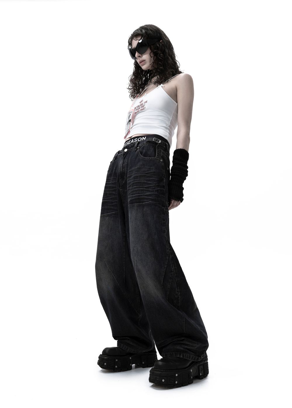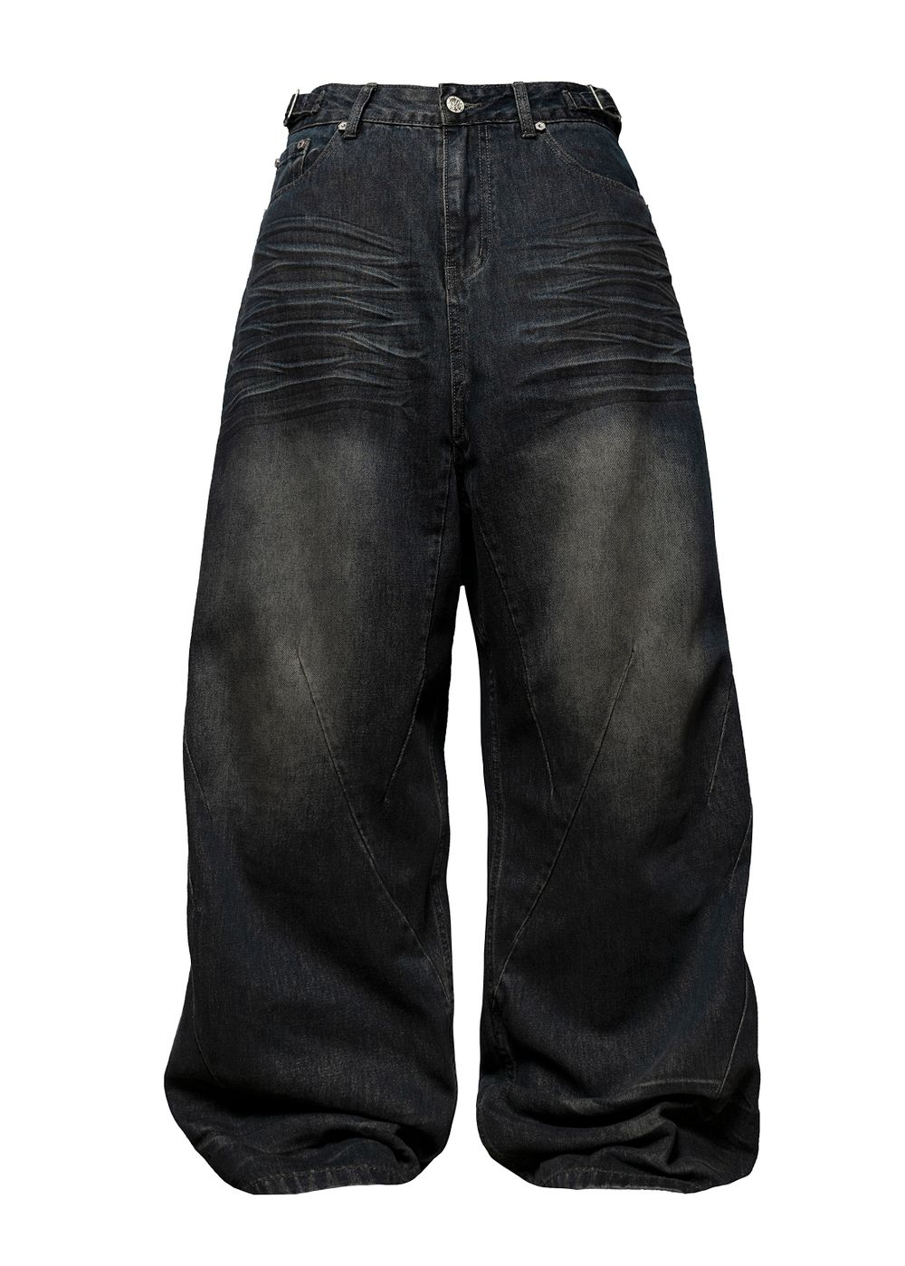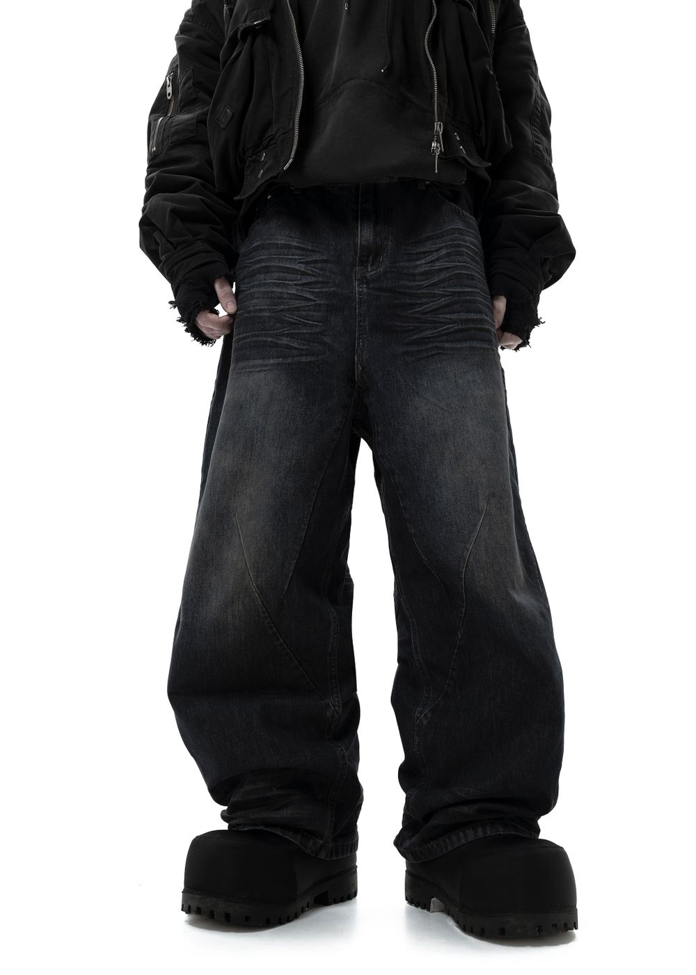 Oversized baggy fit. The jeans feature several decorative geometric seams on the lower front part and more pronounced, raised seams on the back. Adjustable waist. Large logo embroidery on the back pocket.