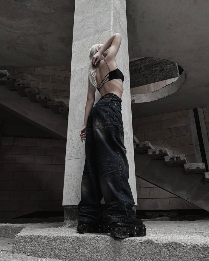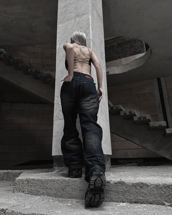 The “SCUM” jeans are a provocation, a mockery of standards and templates. They appear chaotic, as if they've lived through thousands of stories, absorbing the street spirit and rebellion. But behind this lies a thoughtful process: each pair is hand-dyed, and the details are refined to the smallest nuance. Each pair is as unique as its owner. These jeans are for those who play by their own rules and always win. Part of the “Techno Club” line, they feature a unique branded tag in the form of a bank card and a branded techno diskette.