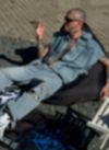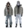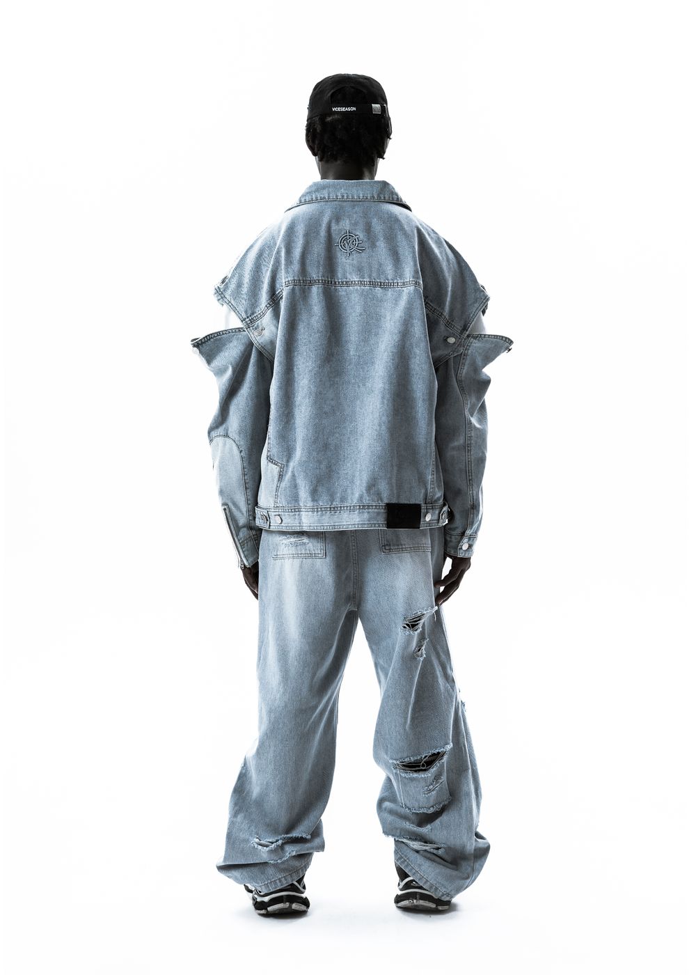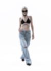 Denim 100% cotton. The product was washed to get the “faded blur” effect.