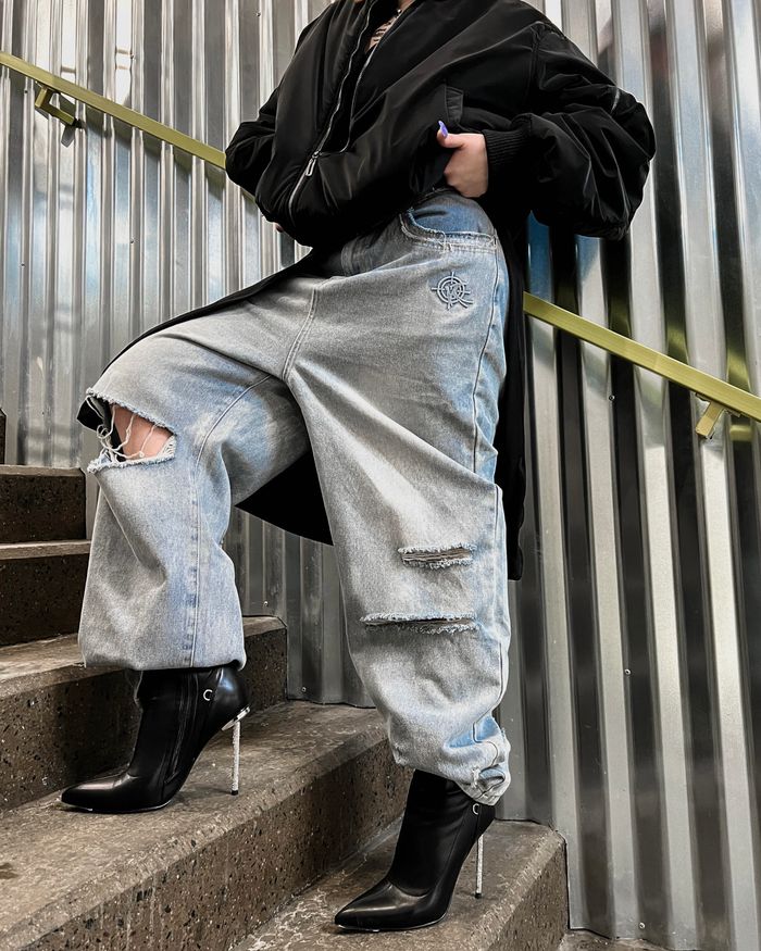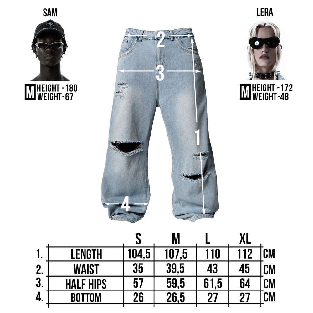 Oversized baggy fit. Low rise, long silhouette. 2 front deep pockets and 2 back pockets. All sizes are already oversized, so we recommend to take your size.