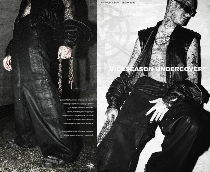 Деним 100% хлопок. Каждая пара джинс на первом этапе проходит специальную стирку для придания ткани мягкости. Затем, индивидуально вручную покрывается специальным составом из воска для придания джинсам лакированного глянцевого эффекта. Вощенный хлопок - это одна из самых уникальных, сложных и затратных технологий на рынке.