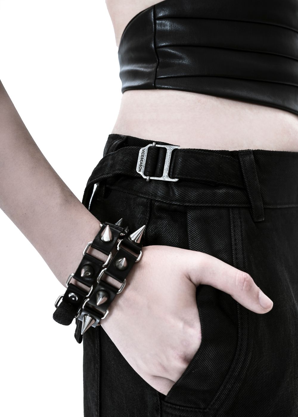 Durable YKK zipper, branded metal button with engraved logo. Branded metal buckles on the waistband for adjusting the waist width and fit. Metal rings on the knee circumference and back pockets.