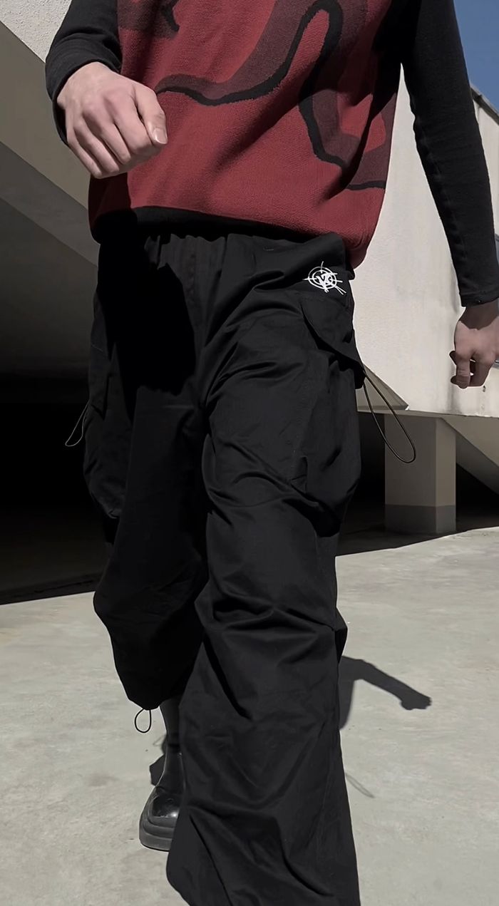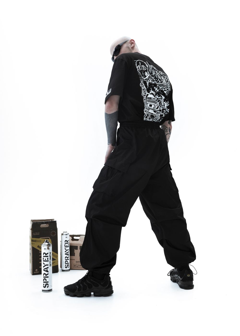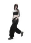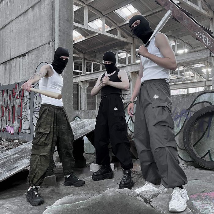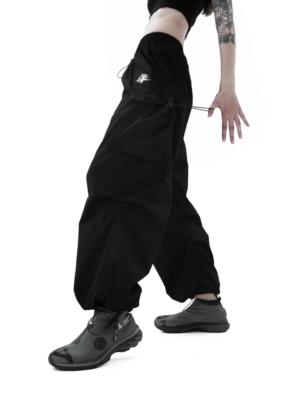 Elastics and fasteners allow pants to take on many different shapes: they can be wide and straight or tightened to create a more difficult shape. Elastic bands on the pockets also contribute to the change of shape. Trousers go well with oversized hoodies and jackets, t-shirts and tops.