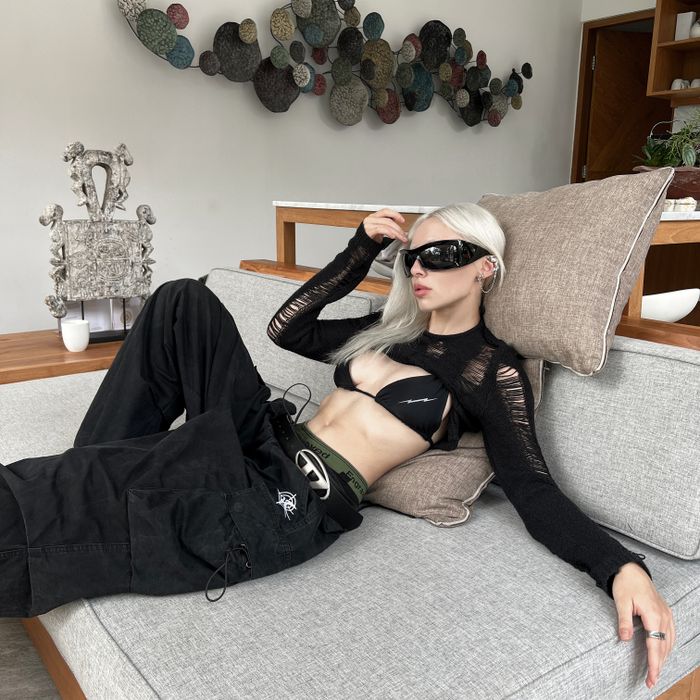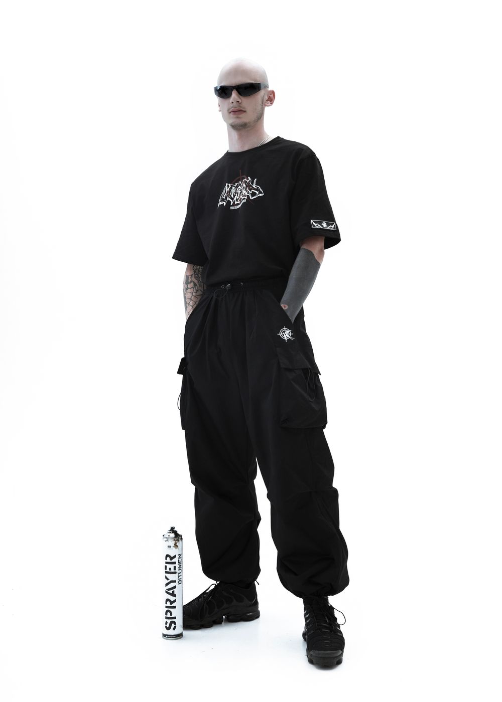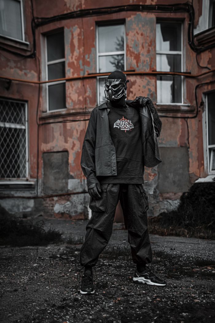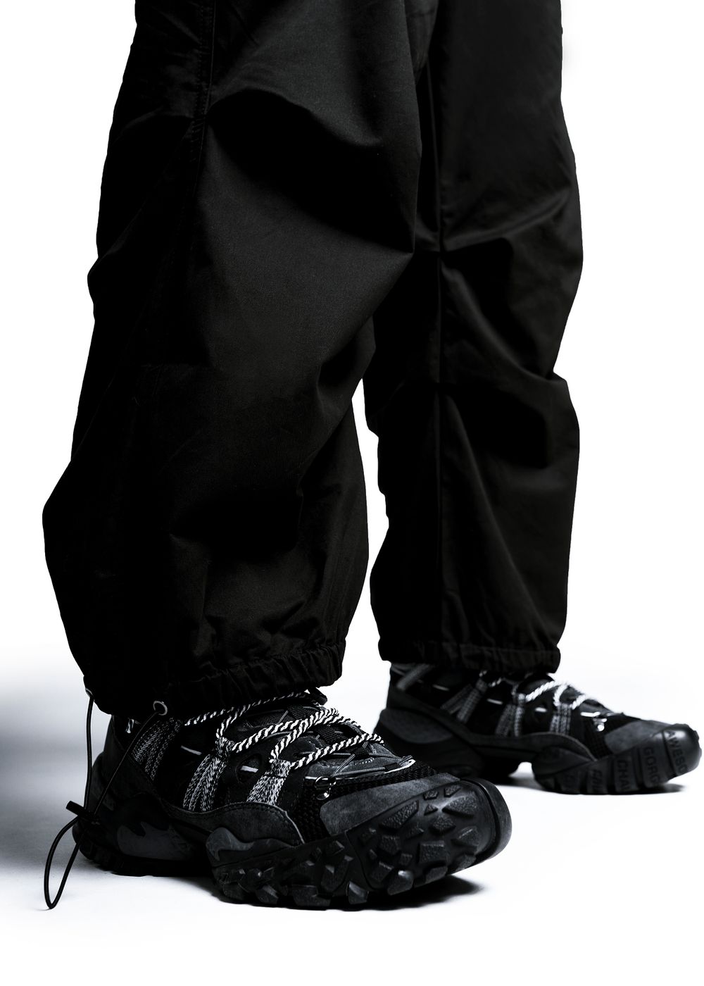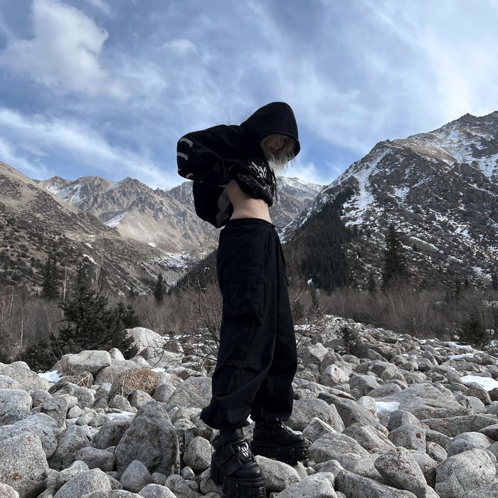Elastics and fasteners allow pants to take on many different shapes: they can be wide and straight or tightened to create a more difficult shape. Elastic bands on the pockets also contribute to the change of shape. Trousers go well with oversized hoodies and jackets, t-shirts and tops.