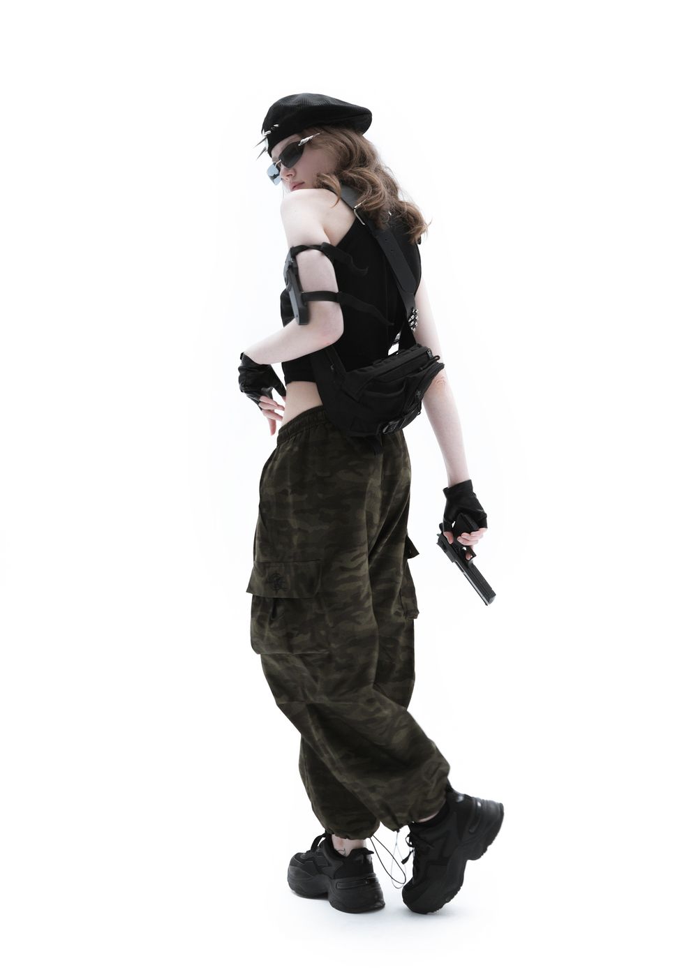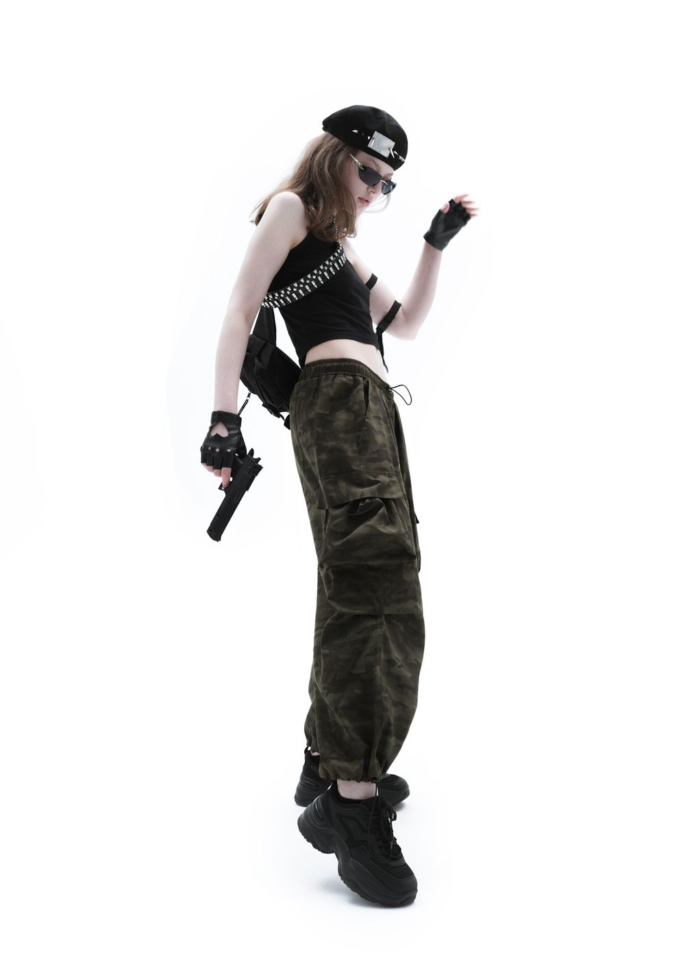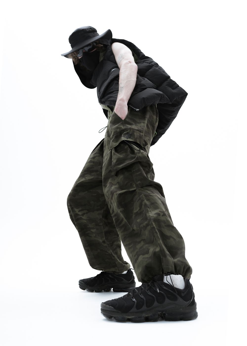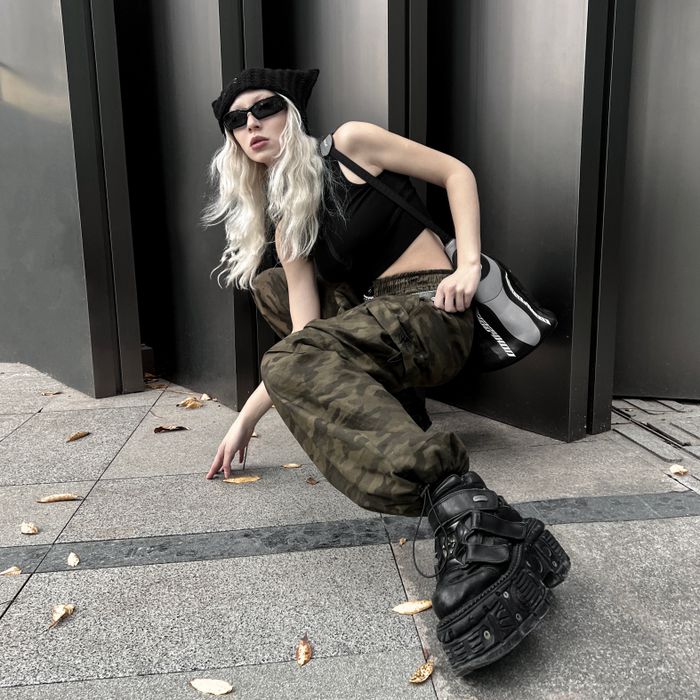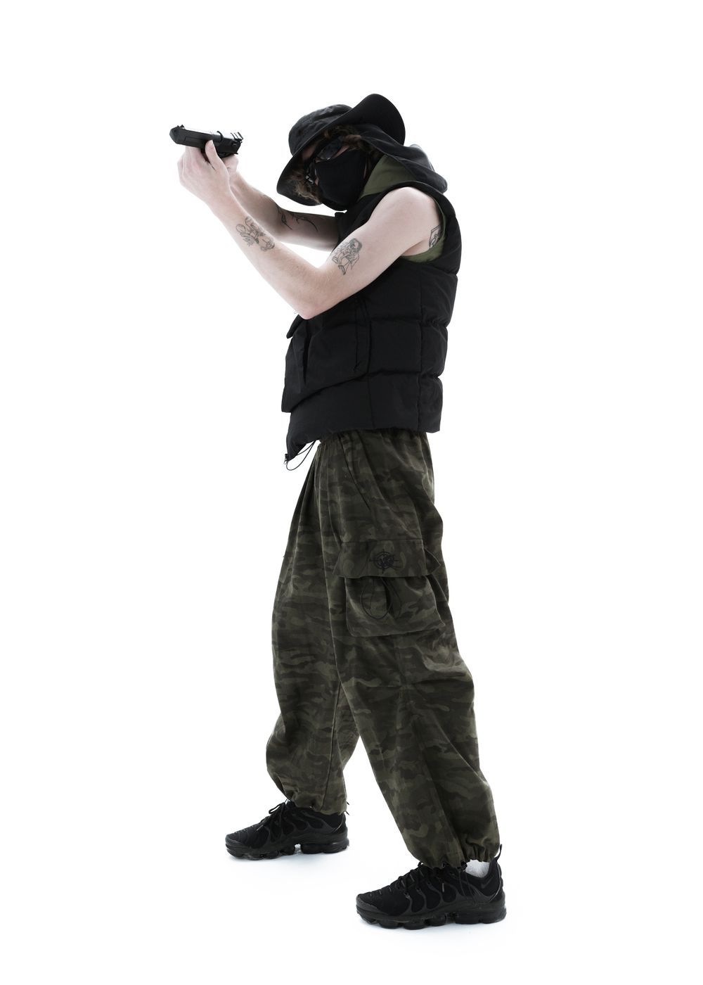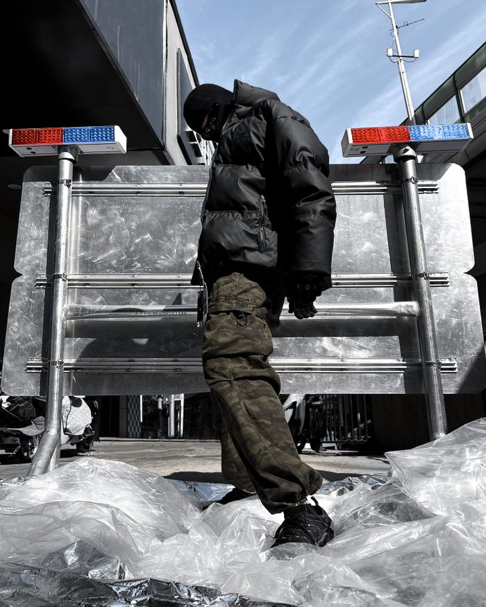Elastics and fasteners allow pants to take on many different shapes: they can be wide and straight or tightened to create a more difficult shape. Elastic bands on the pockets also contribute to the change of shape. Trousers go well with oversized hoodies and jackets, t-shirts and tops.