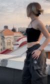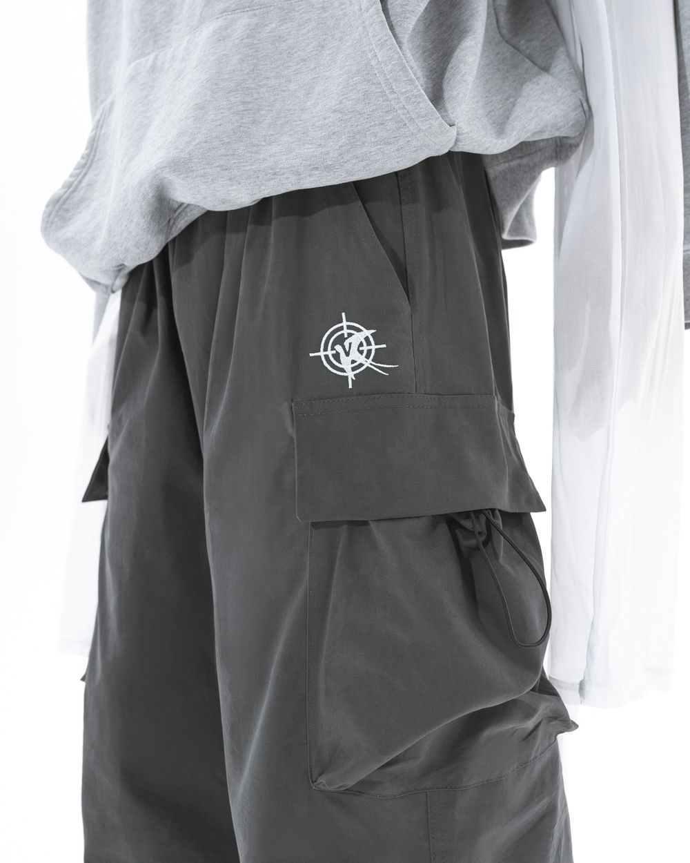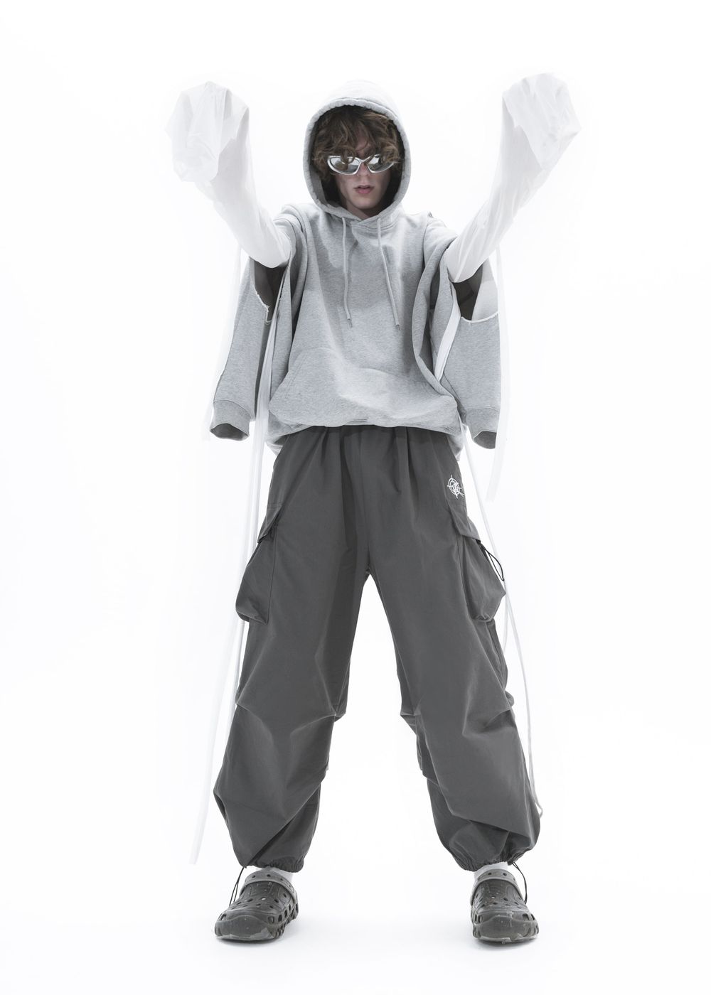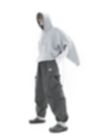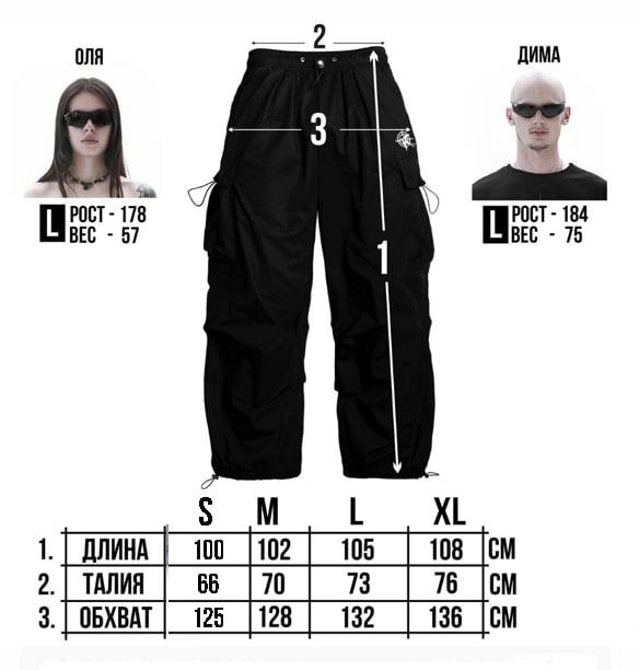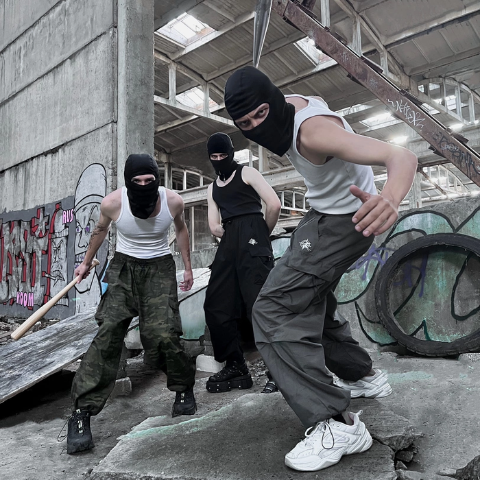 Elastics and fasteners allow pants to take on many different shapes: they can be wide and straight or tightened to create a more difficult shape. Elastic bands on the pockets also contribute to the change of shape. Trousers go well with oversized hoodies and jackets, t-shirts and tops.