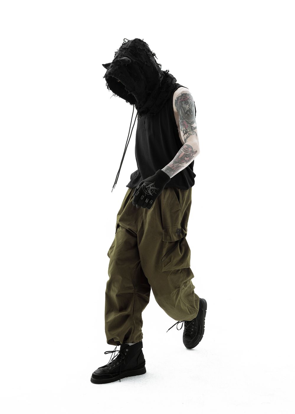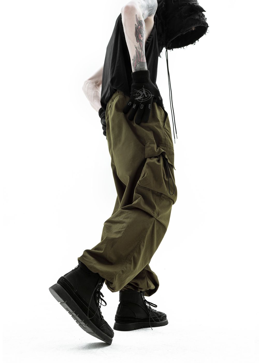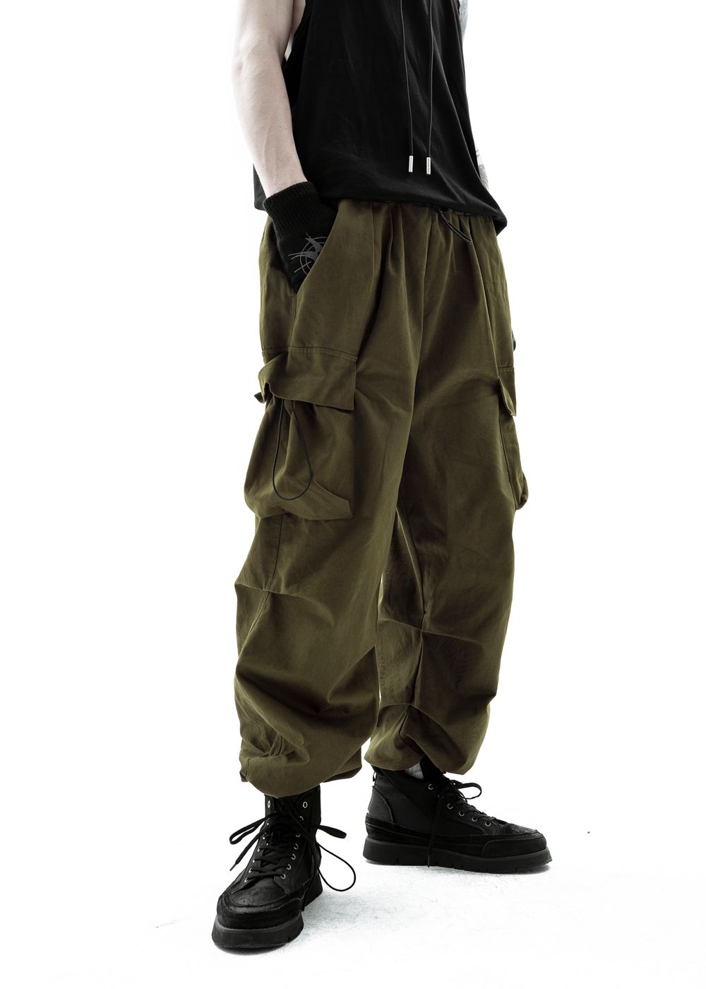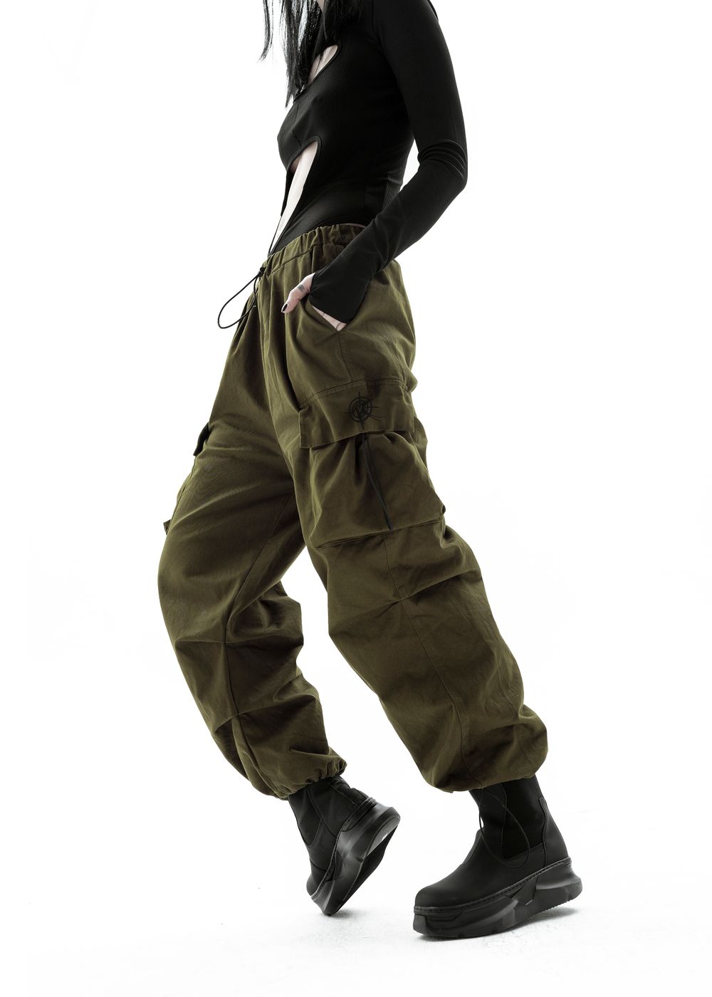 Elastics and fasteners allow pants to take on many different shapes: they can be wide and straight or tightened to create a more difficult shape. Elastic bands on the pockets also contribute to the change of shape. Trousers go well with oversized hoodies and jackets, t-shirts and tops.