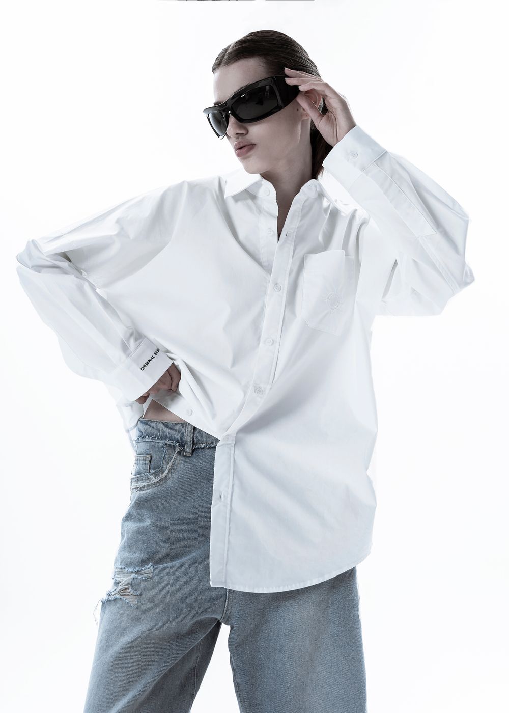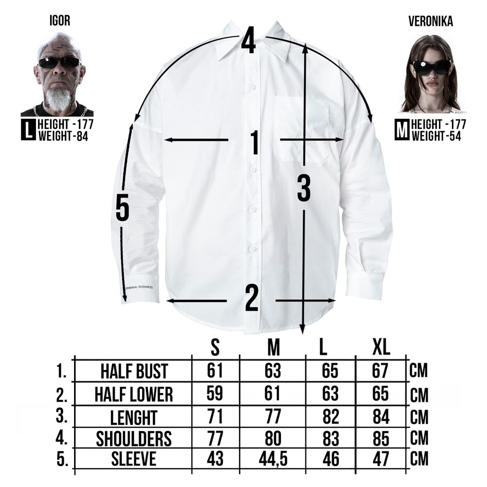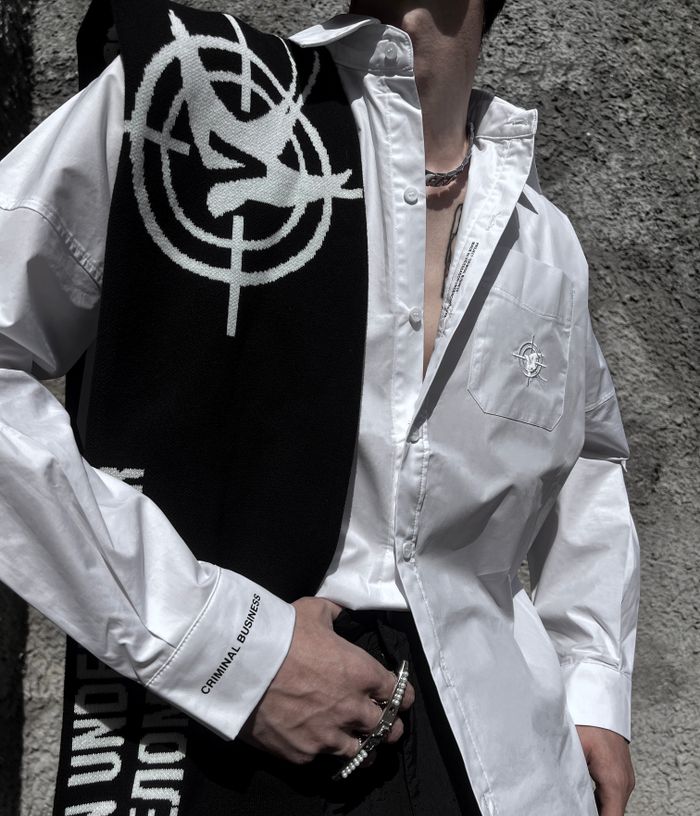 Included into “Criminal business” line. The classic basic shirt with branded details will complement and make any outfit elegant. Good for official events and casual hangouts.