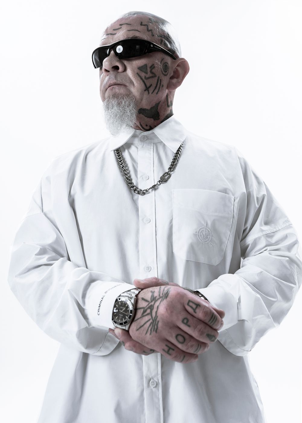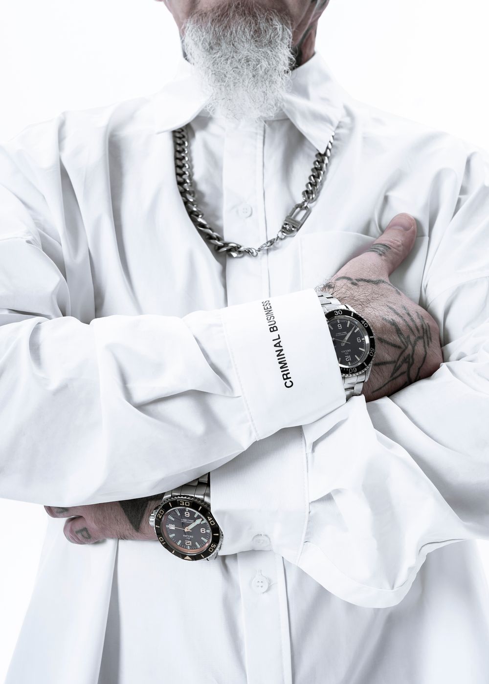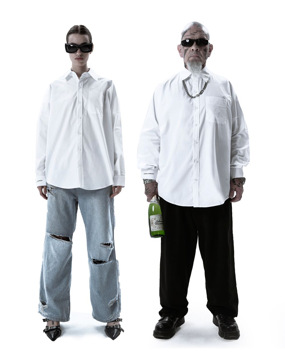 Included into “Criminal business” line. The classic basic shirt with branded details will complement and make any outfit elegant. Good for official events and casual hangouts.