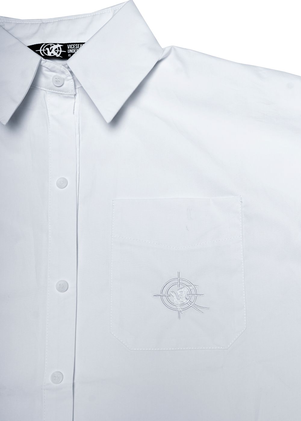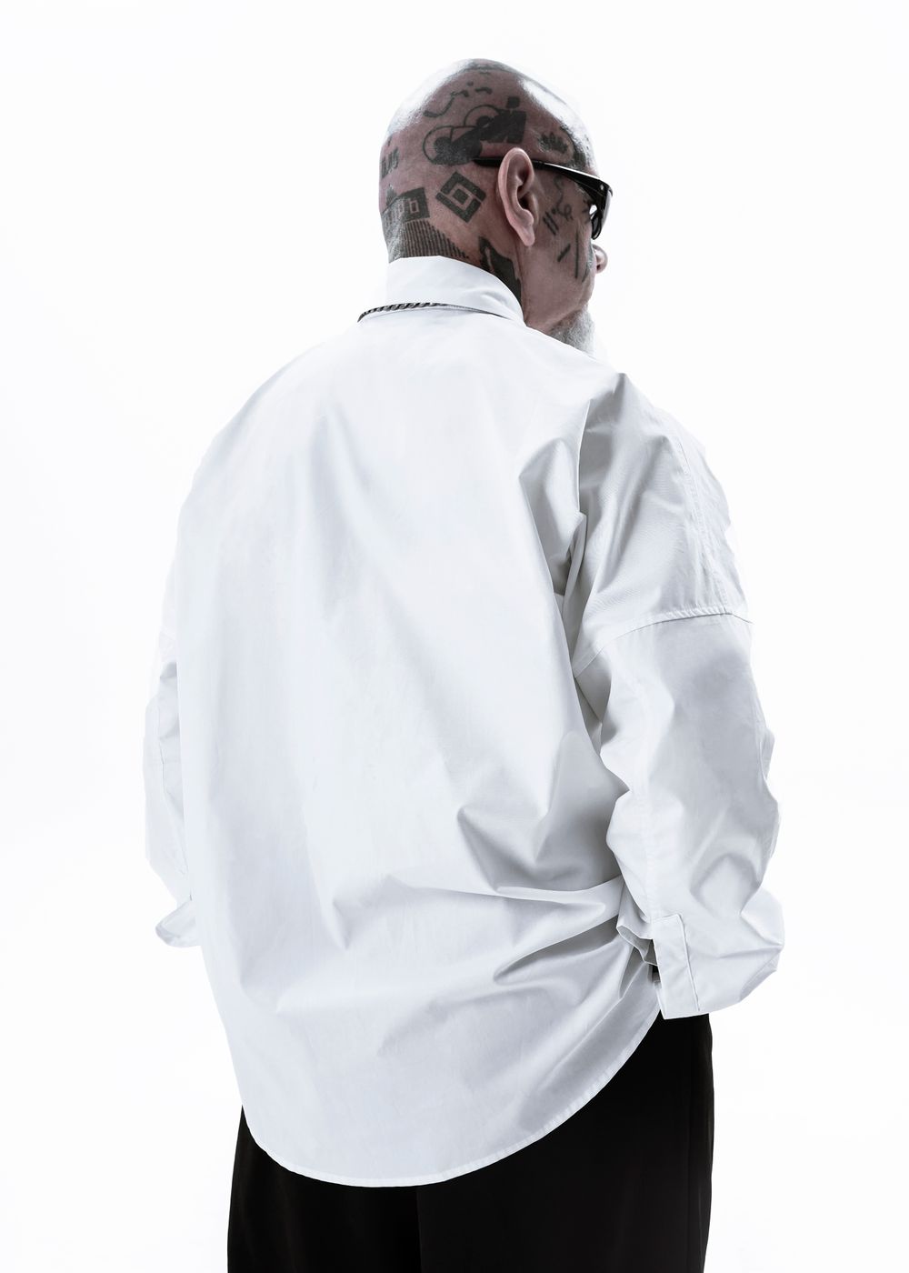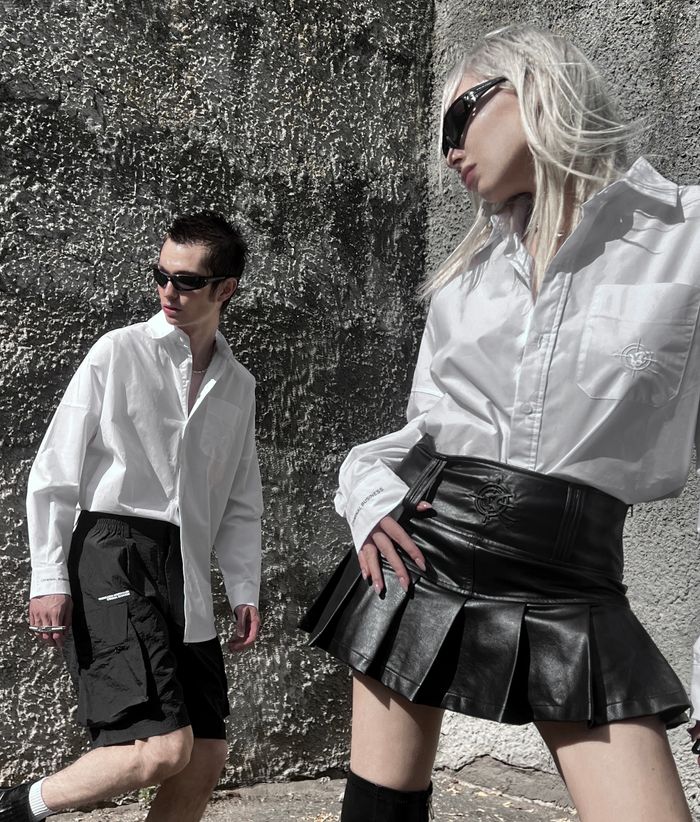 Oversized fit with wide sleeves and dropped shoulders. Straight classic cut. Pointed classy collar. Digital print on the cuff and inside of the shirt. White logo embroidery on pocket.