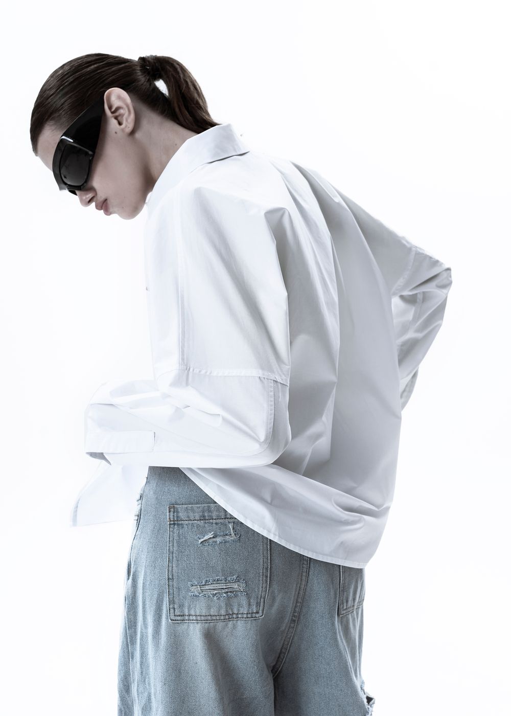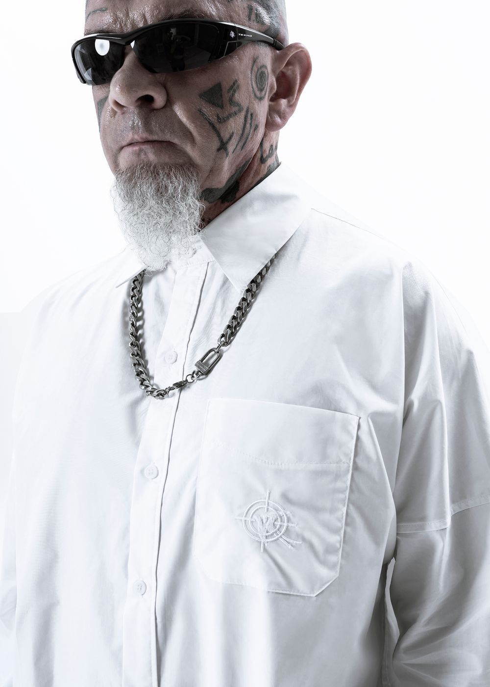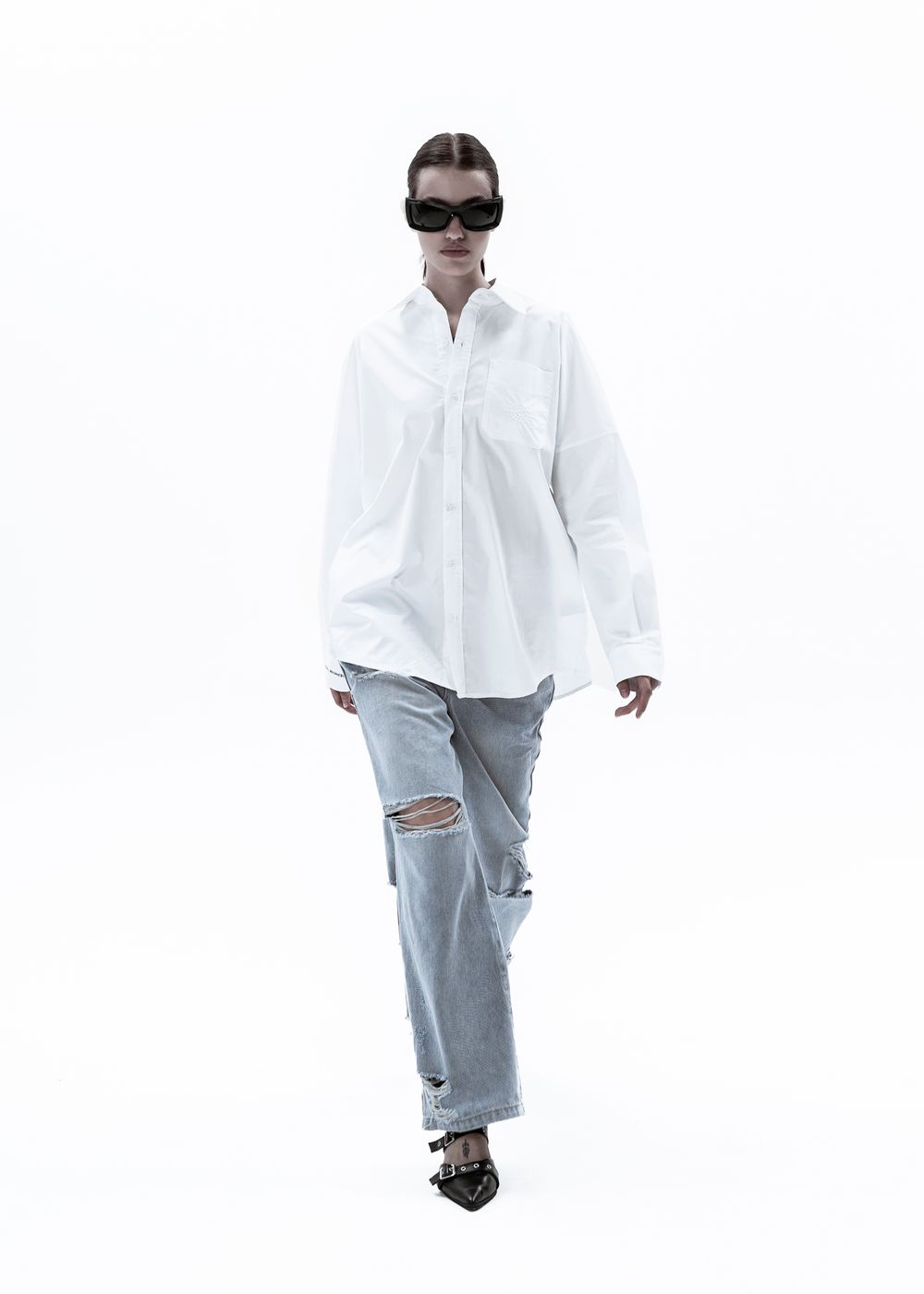 Oversized fit with wide sleeves and dropped shoulders. Straight classic cut. Pointed classy collar. Digital print on the cuff and inside of the shirt. White logo embroidery on pocket.
