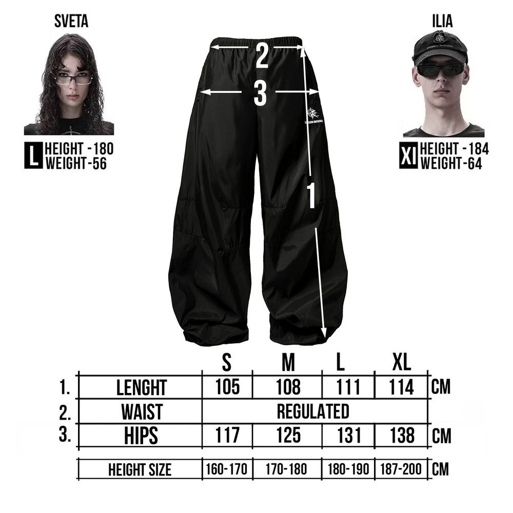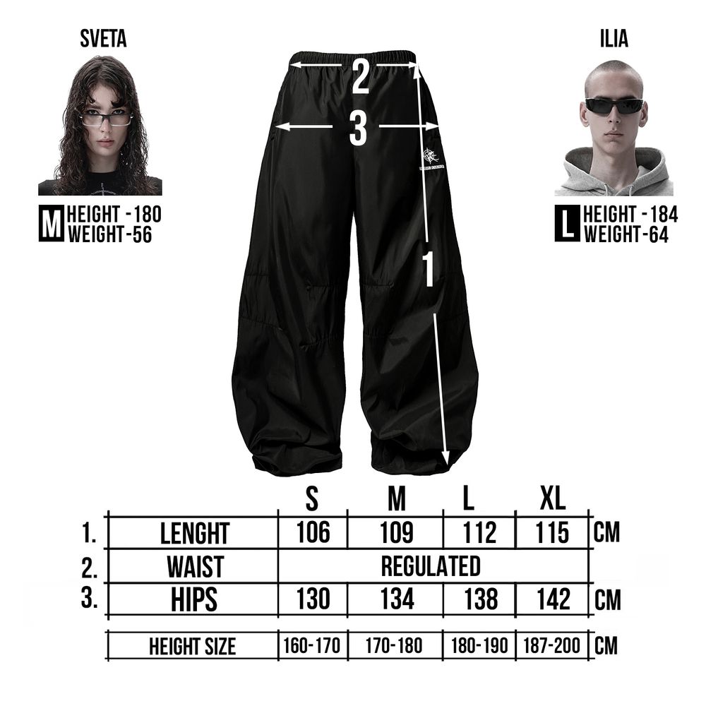 Voluminous elongated oversized fit. Elastic waistband. Easily folds and fits into a bag, making the pants an ideal travel companion. Convenient side pockets and a back zip pocket for storing keys, phone, and other small items. Embroidered branding. A minimalist design that easily integrates into any wardrobe, making the pants a versatile choice for any occasion. We recommend choosing your regular size, as all sizes are initially designed to be oversized!