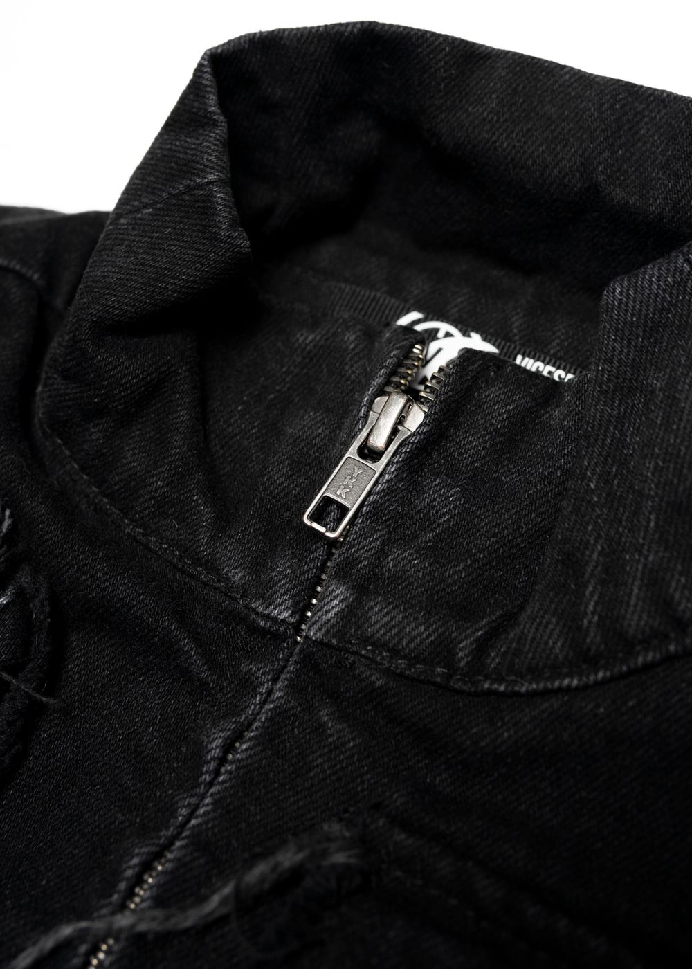 Heavy denim 100% cotton. The product was specially washed to get vintage effect and faded thread effect.