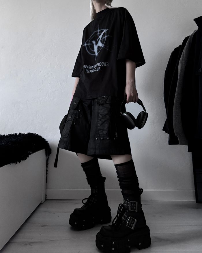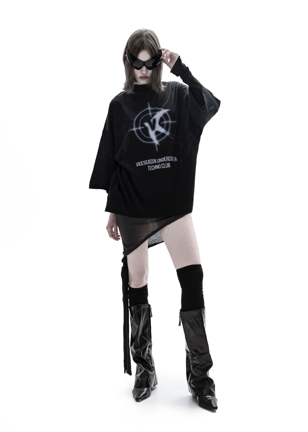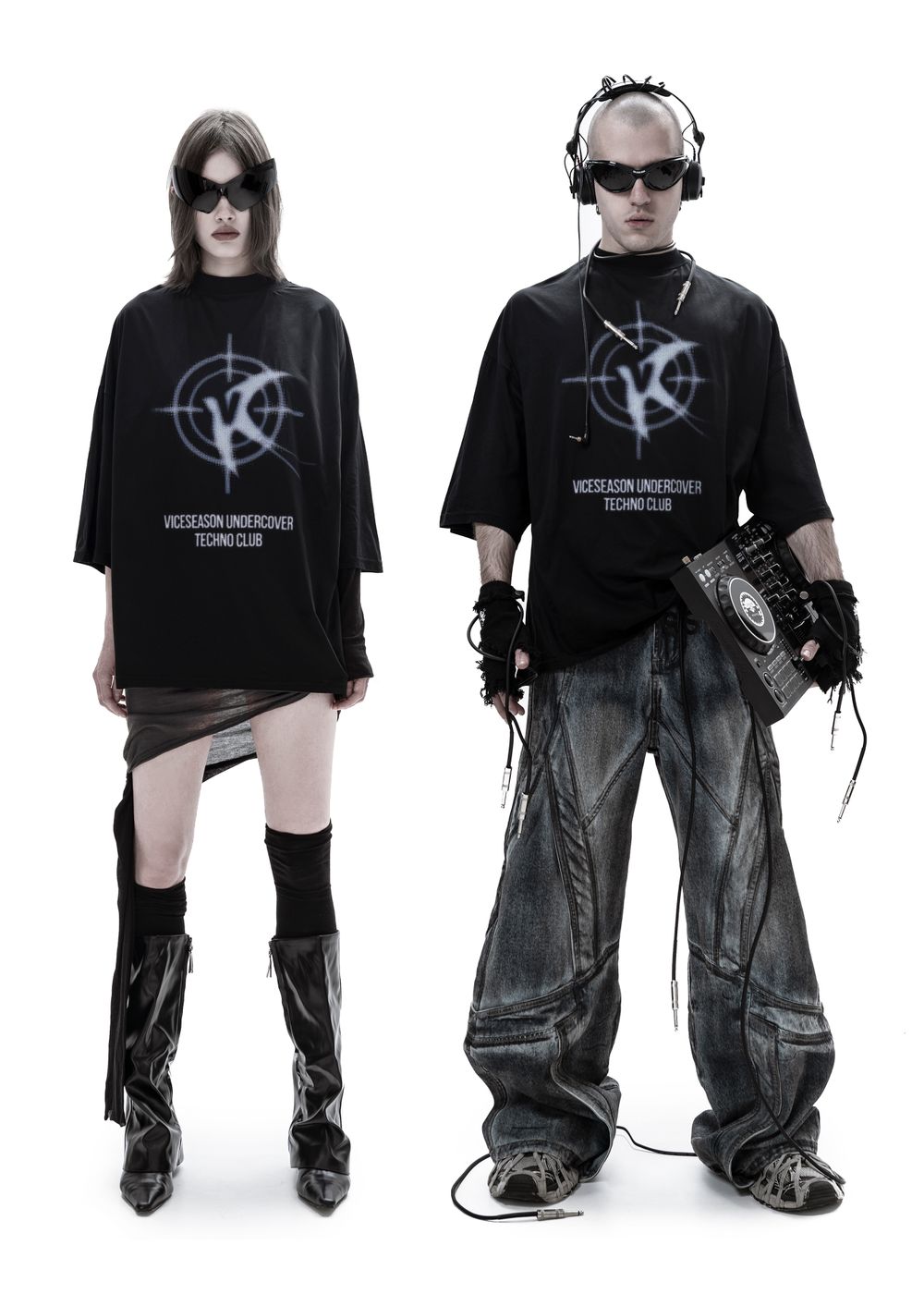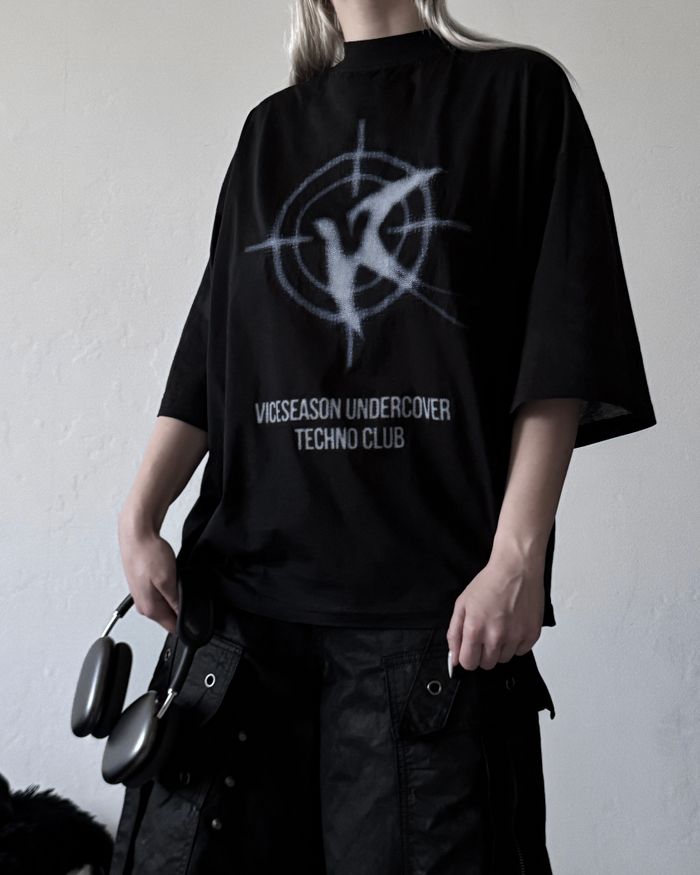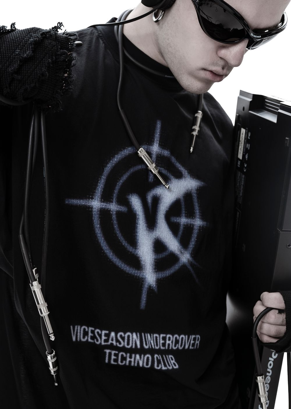 The “Techno Club” tee is a flash of light on a dark dancefloor. A semi-transparent, ghostlike silhouette that flows like smoke through the strobes. For those who stay until the last track plays, long after the moon fades behind the clouds.