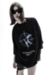 Elongated oversized fit with dropped shoulders and extended sleeves. High, wide elastic neckline. The chest print is made using durable, high-resolution digital printing that won’t fade or crack. It offers fine detail and a subtle glowing effect.