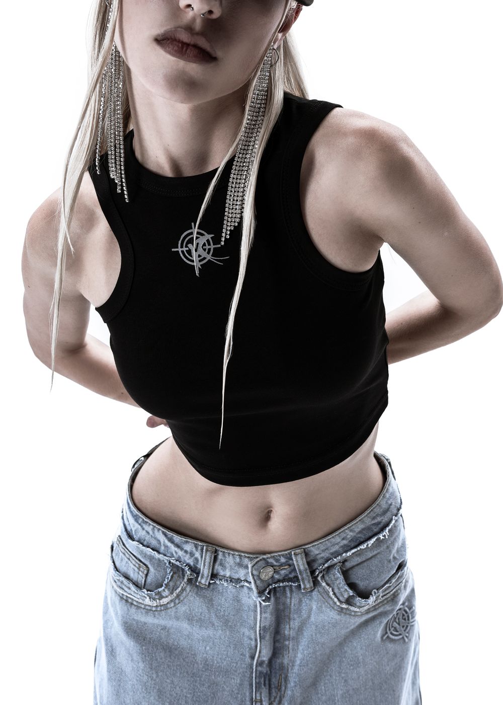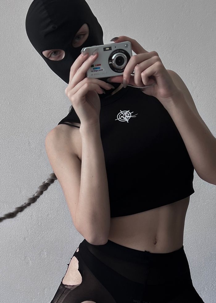 Basic crop top with a sporty fit. Emphasizes the waist thanks to the cut. Durable reflective print that will not crack while stretching or washing.
