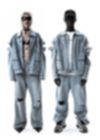 Denim 100% cotton. The product has been specially washed to get “faded” effect.