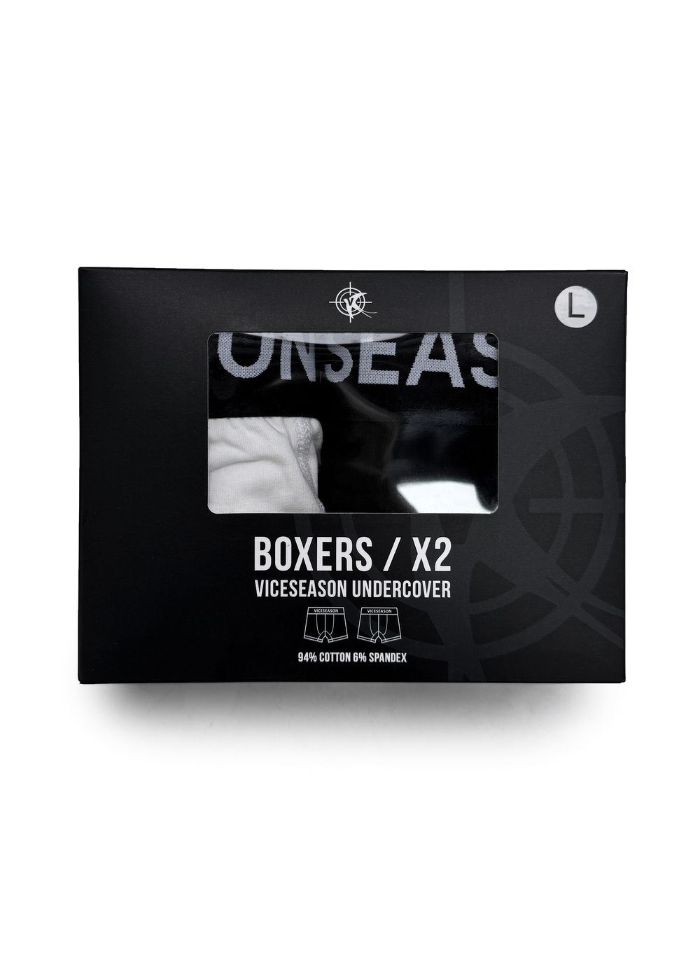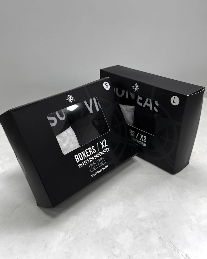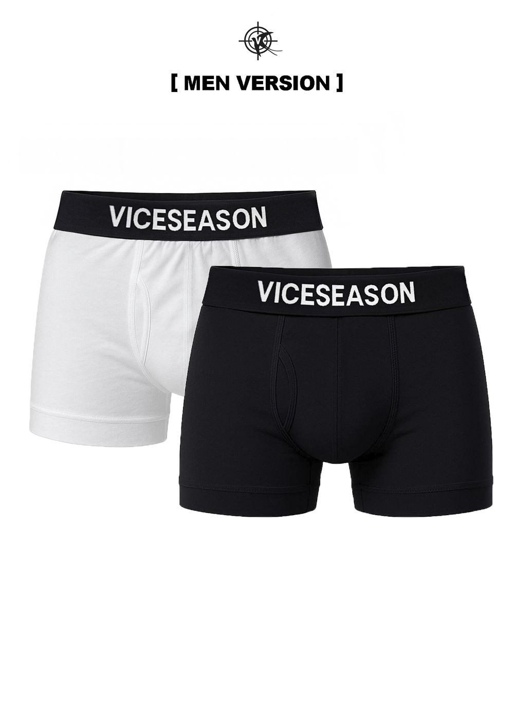 Each set includes two pairs of boxers — one black, one white. Comfortable cut with a wide elastic waistband branded with the VICSEASON logo. The fit allows free movement and daily confidence.