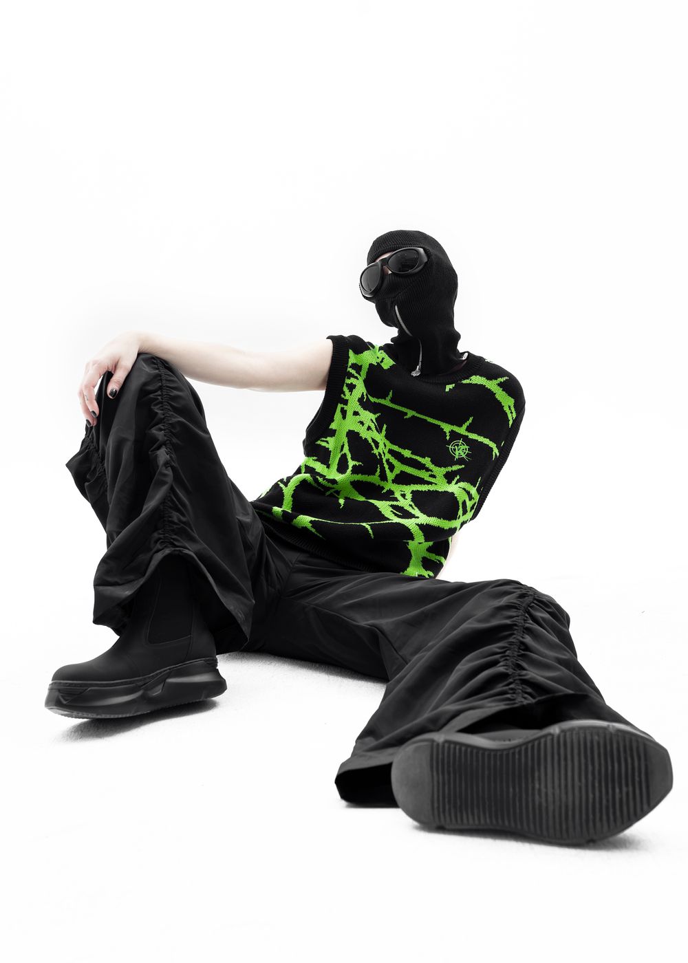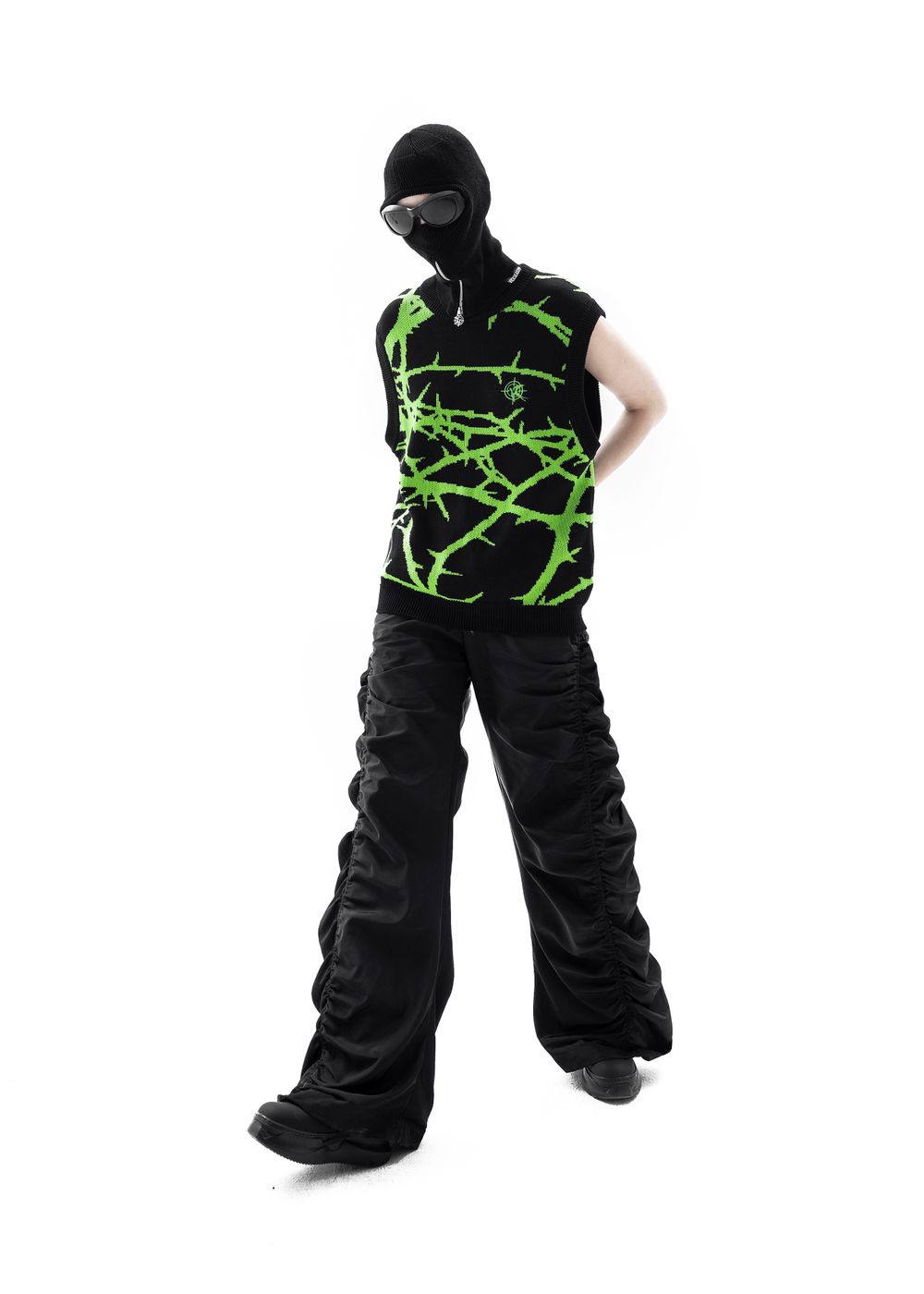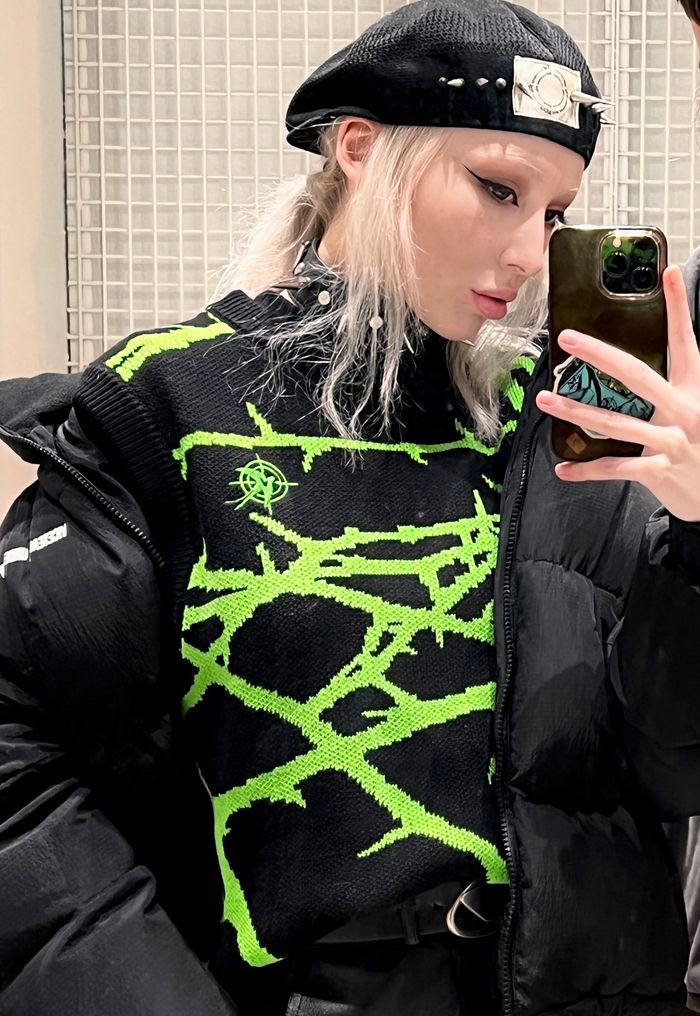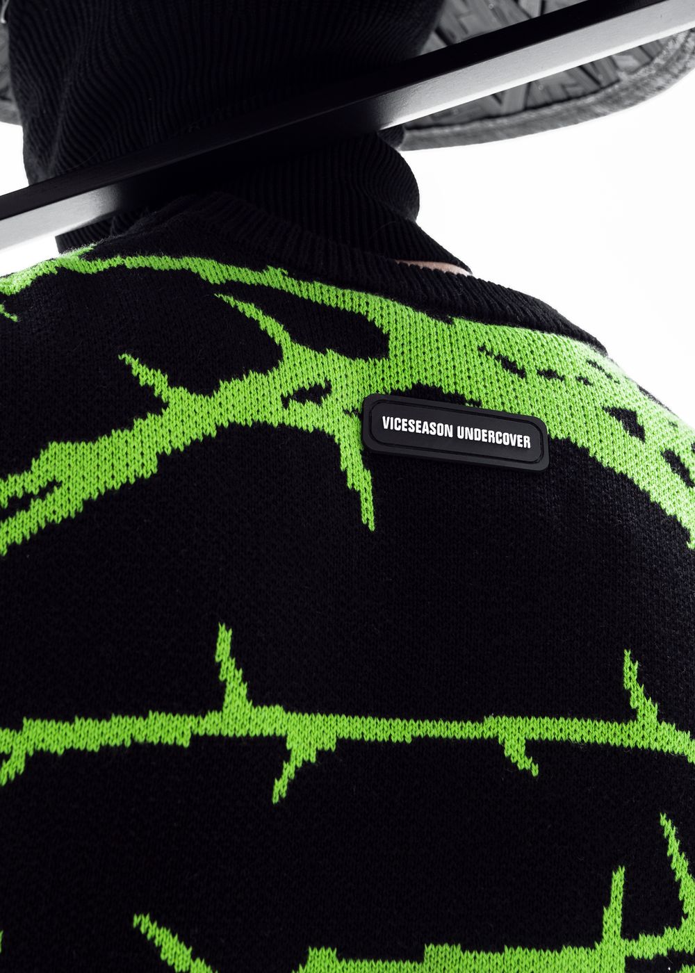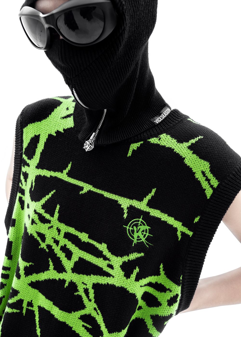 Due to the density of the vest, it can be worn literally with everything. It also looks great over a hoodie. The material does not prick at all since because there is no wool in the fabric, so the vest can be worn on a naked body as a knitted T-shirt.