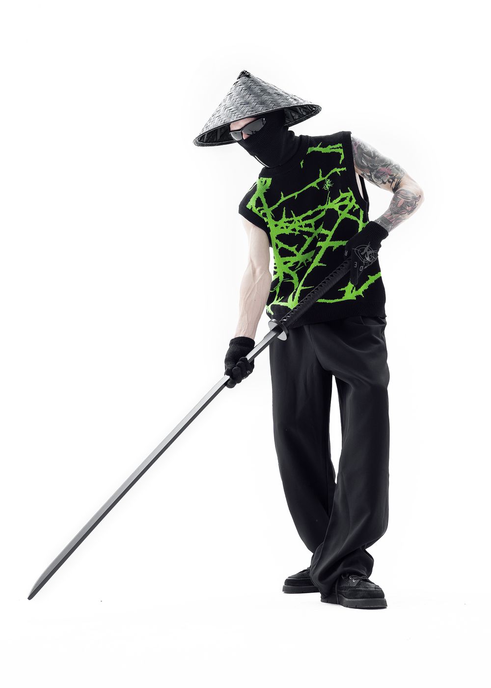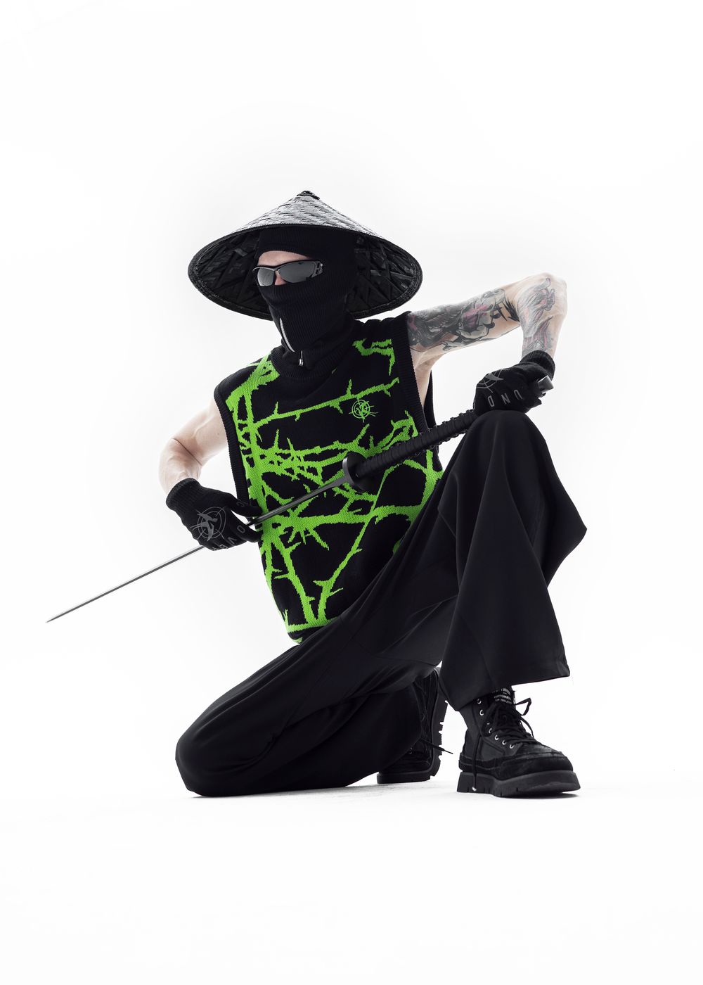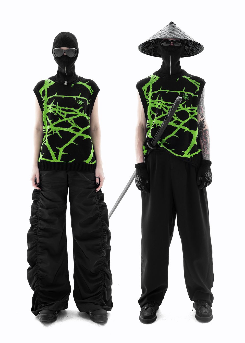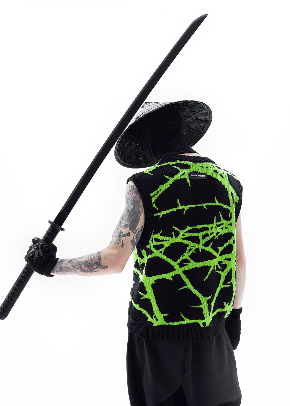 Due to the density of the vest, it can be worn literally with everything. It also looks great over a hoodie. The material does not prick at all since because there is no wool in the fabric, so the vest can be worn on a naked body as a knitted T-shirt.