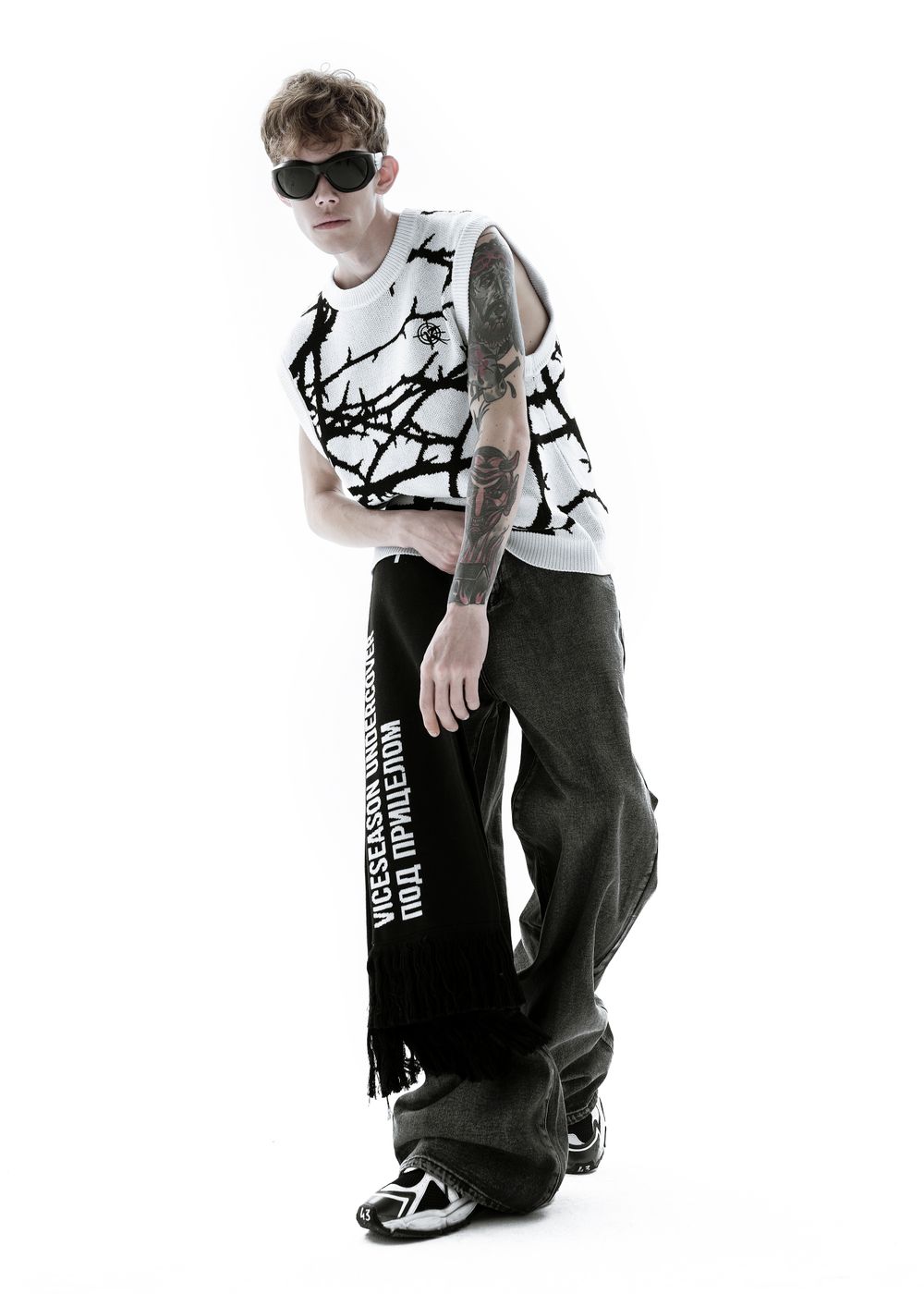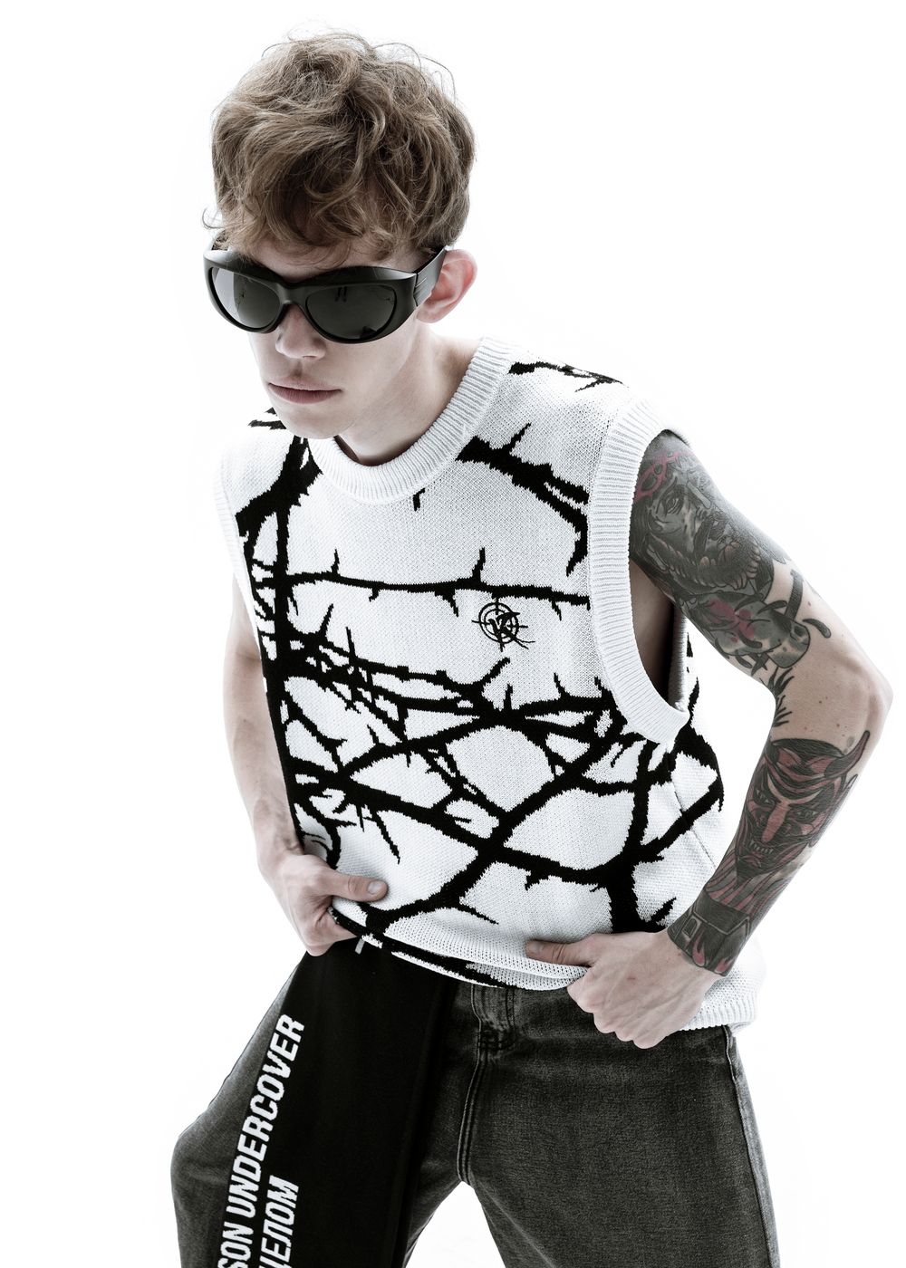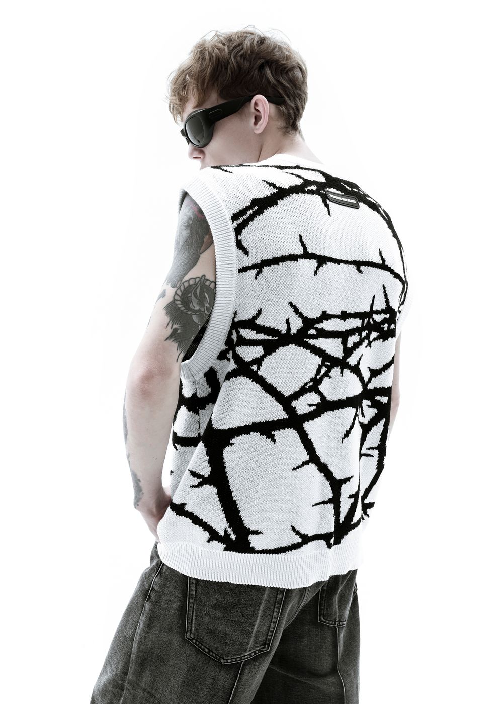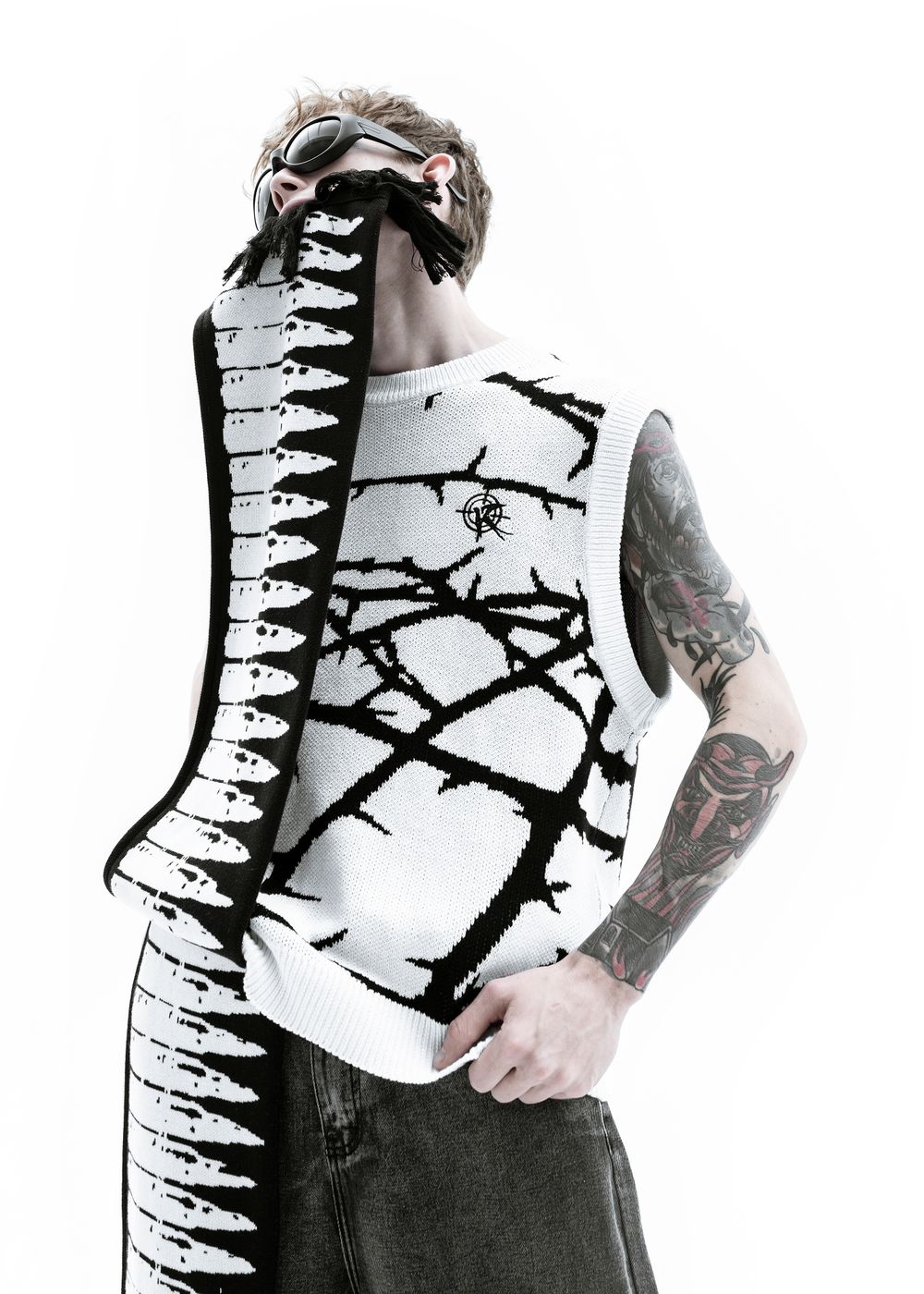 Due to the density of the vest, it can be worn literally with everything. It also looks great over a hoodie. The material does not prick at all since because there is no wool in the fabric, so the vest can be worn on a naked body as a knitted T-shirt.