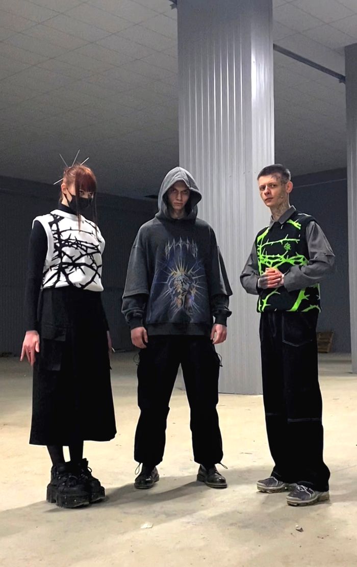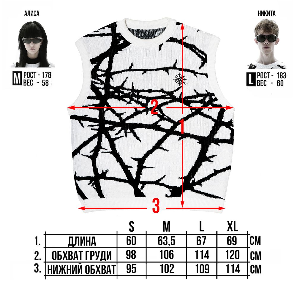 Oversized form. Knitted pattern of thorny forest thickets, through which the way of our life goes.